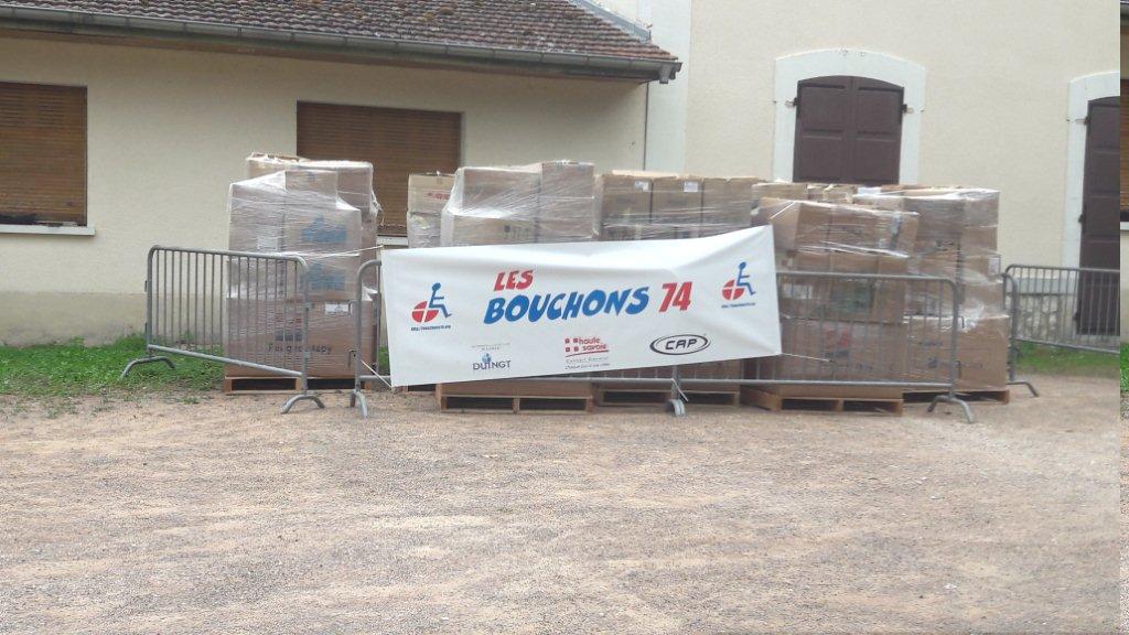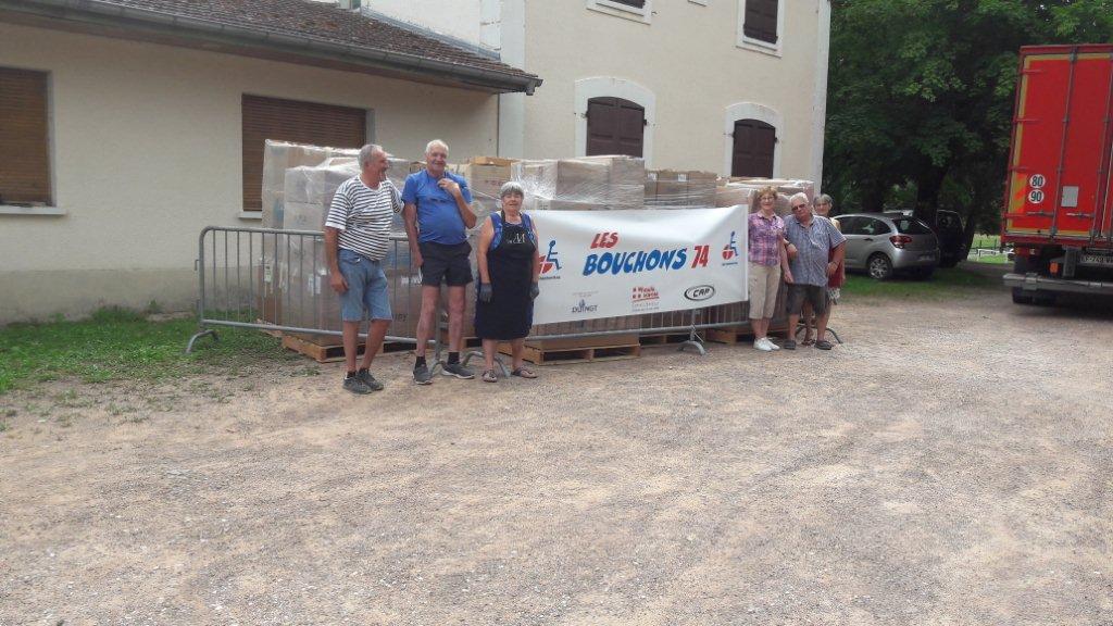 Alors un grand merci aux donateurs de ces bouchons, à l’équipe spécifique de bénévole qui les trie et aux valeureux bénévoles qui ont aidé au chargement pour l’expédition au recycleur.