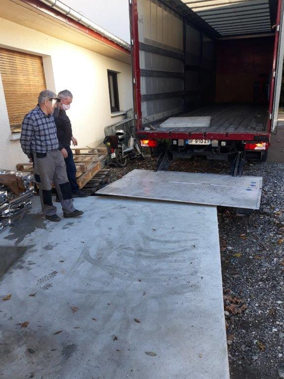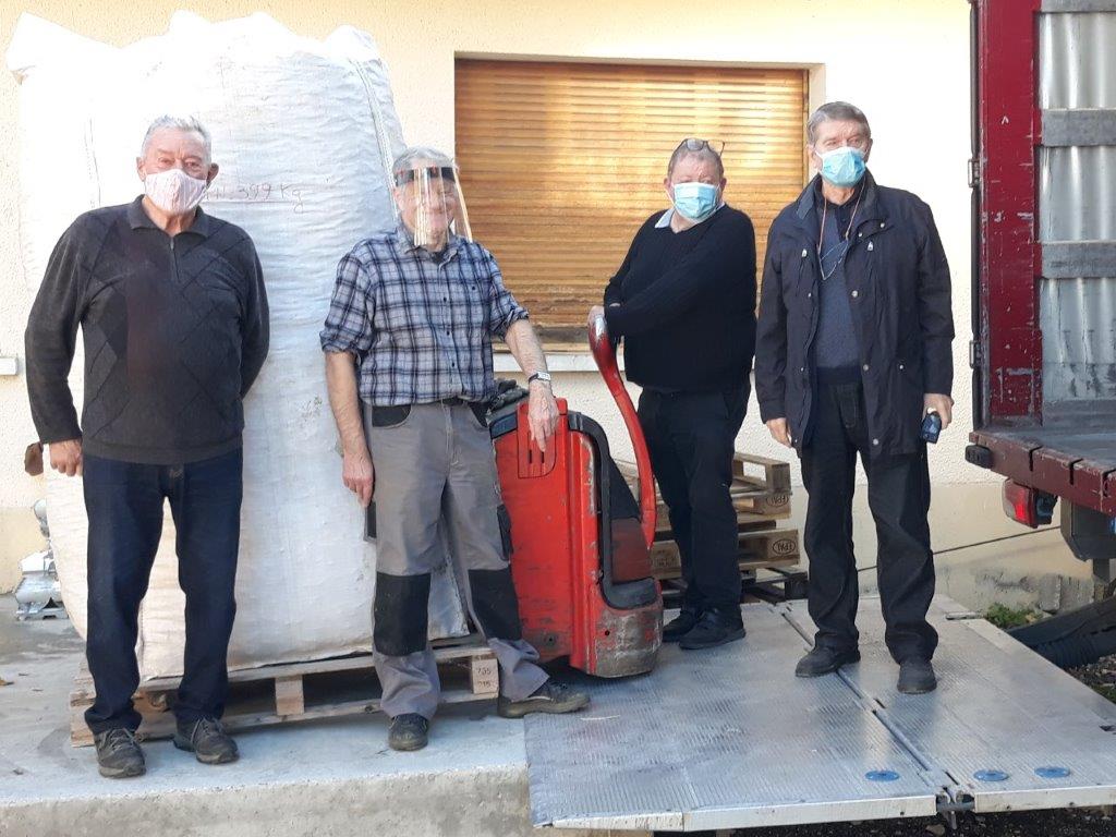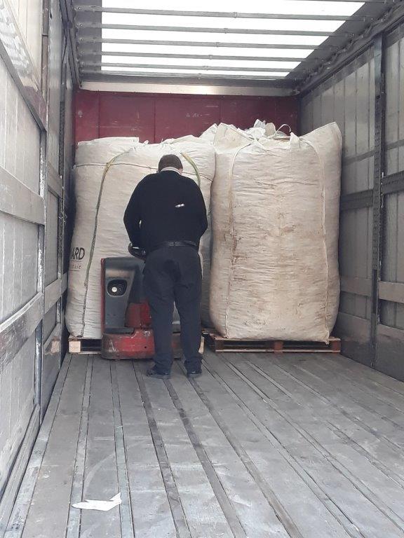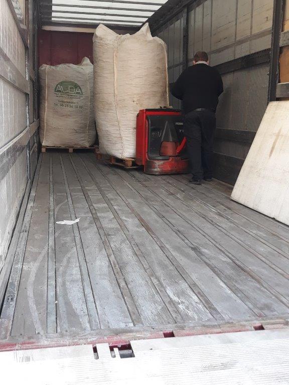 Ce lundi 02 novembre 2020, nos bénévoles ont procédé, avec les autorisations et justificatifs nécessaires, au chargement des bouchons de liège triés (3 400 kg réalisés en quatre mois).