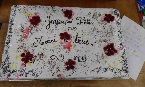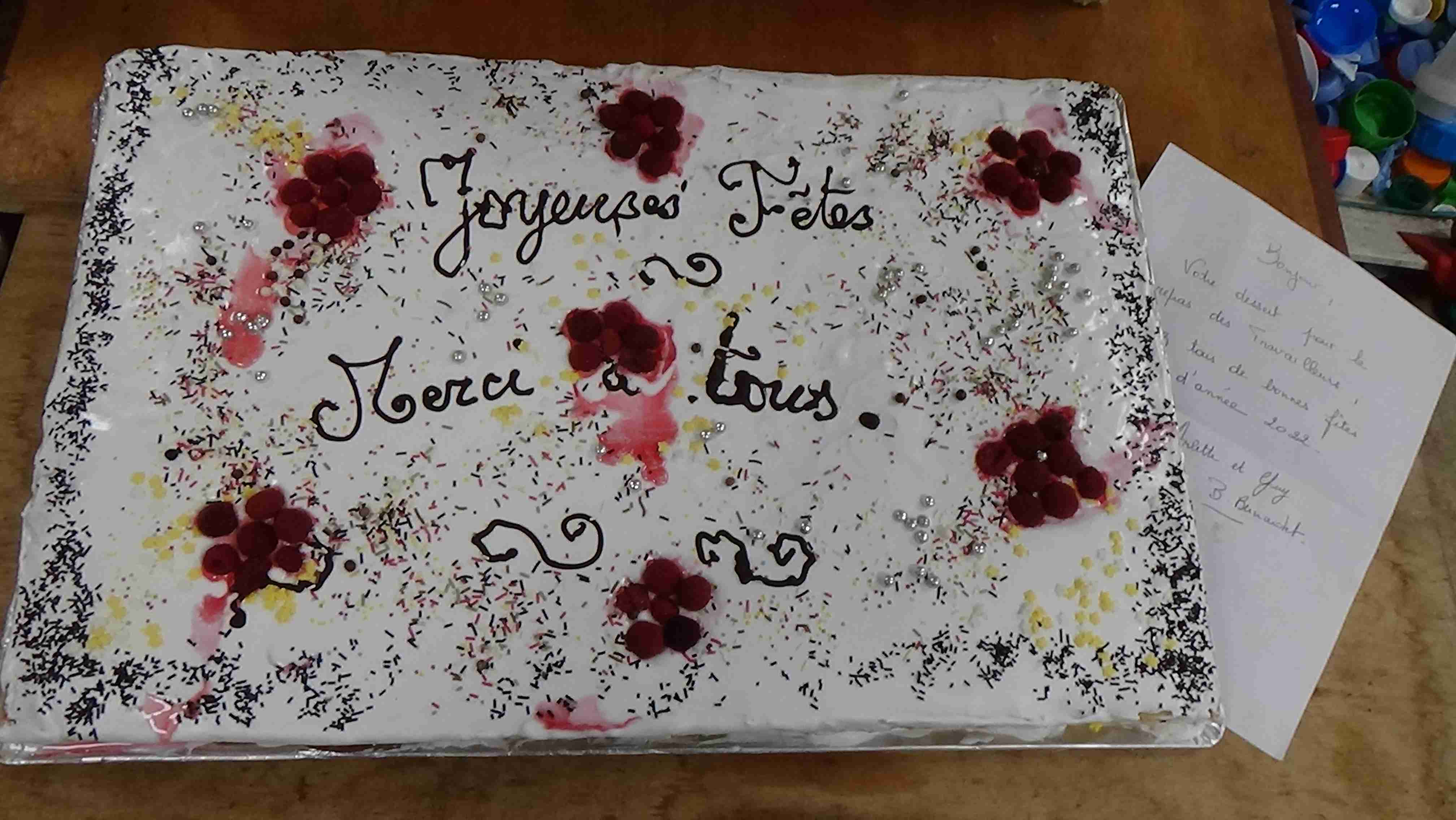 S’en est suivi l’habituelle collation (merci Betty et Olympio) et cerise sur le gâteau (pour ne pas dire framboise) ce fut la dégustation d’un superbe et succulent framboisier, confectionné par Arlette BERNARD-BERNARDET, pour remercier tous les bénévoles.