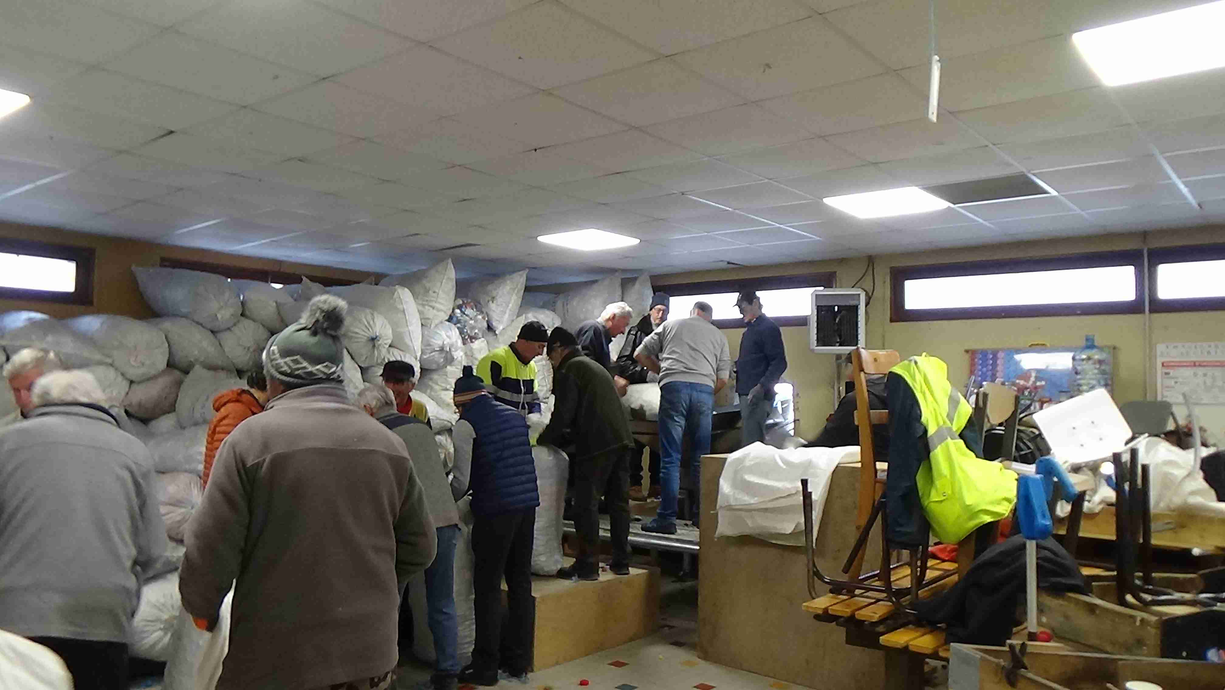 Ce mercredi 14 décembre, le dernier camion de l’année a été rempli avec une météo pluvieuse et froide mais que d’entrain chez les quelques 32 bénévoles qui dès 8H30 étaient tous sur le pont !