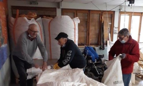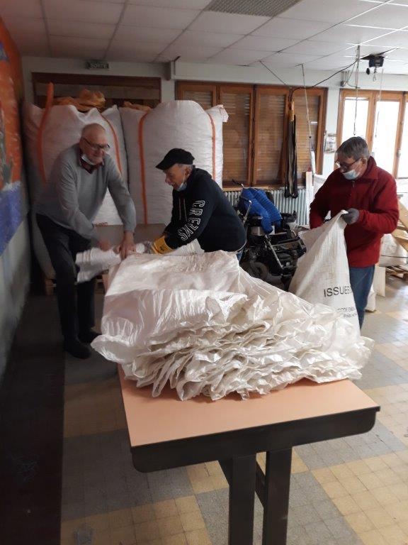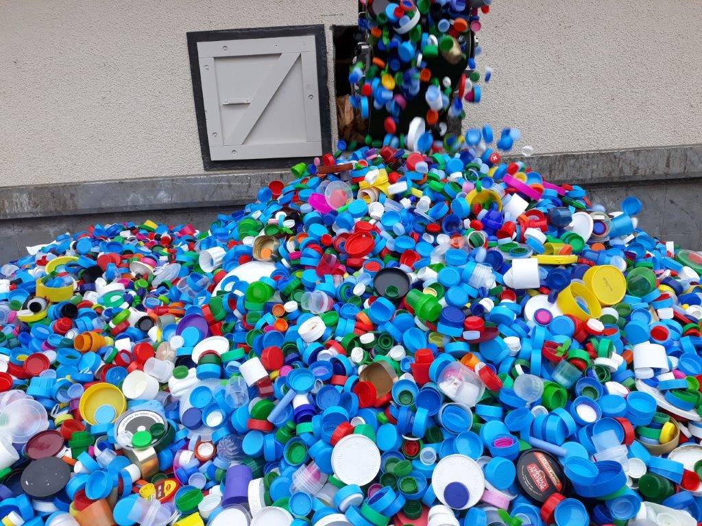 Sur les photos, vous remarquerez qu’il y a des sacs de bouchons déposés manuellement.