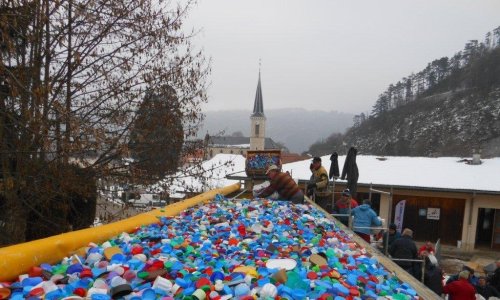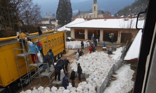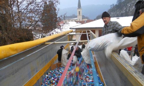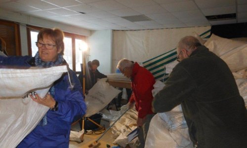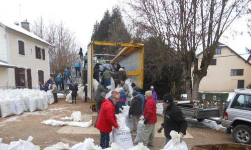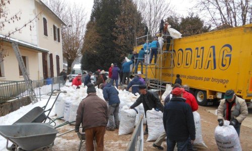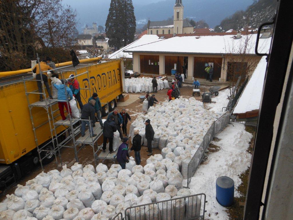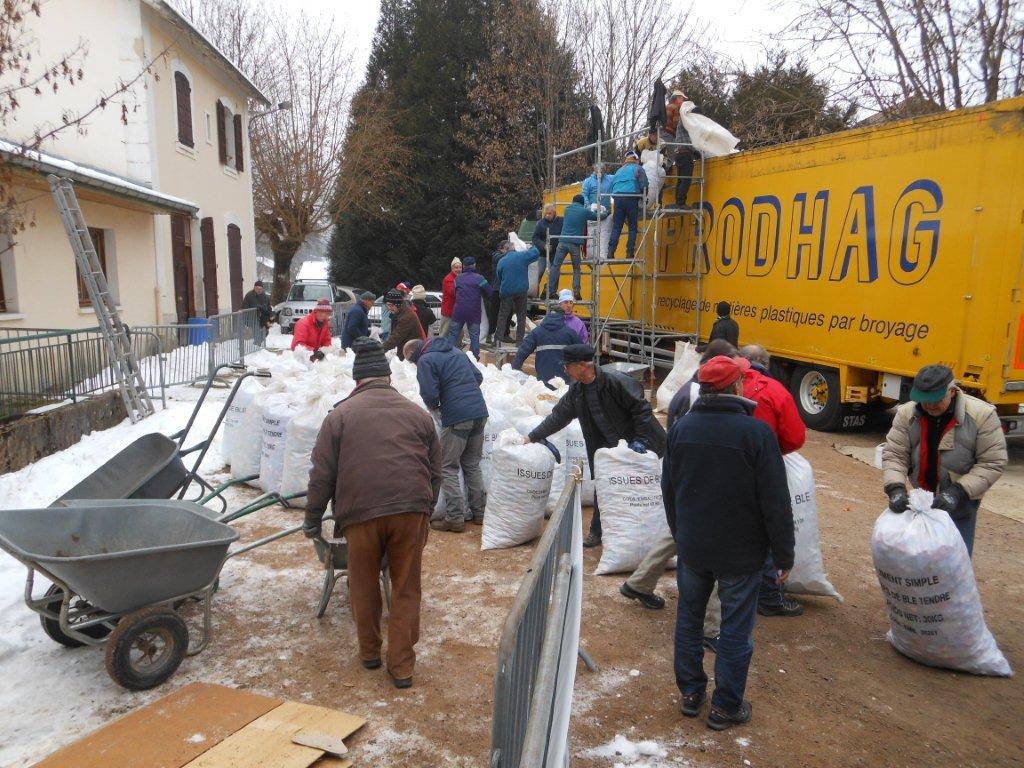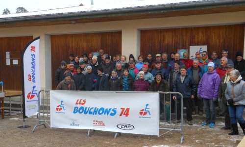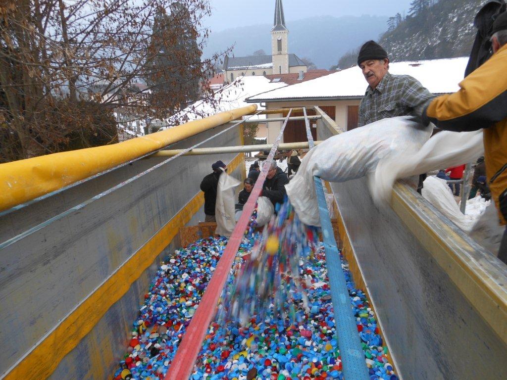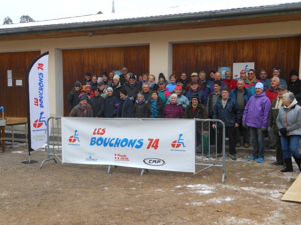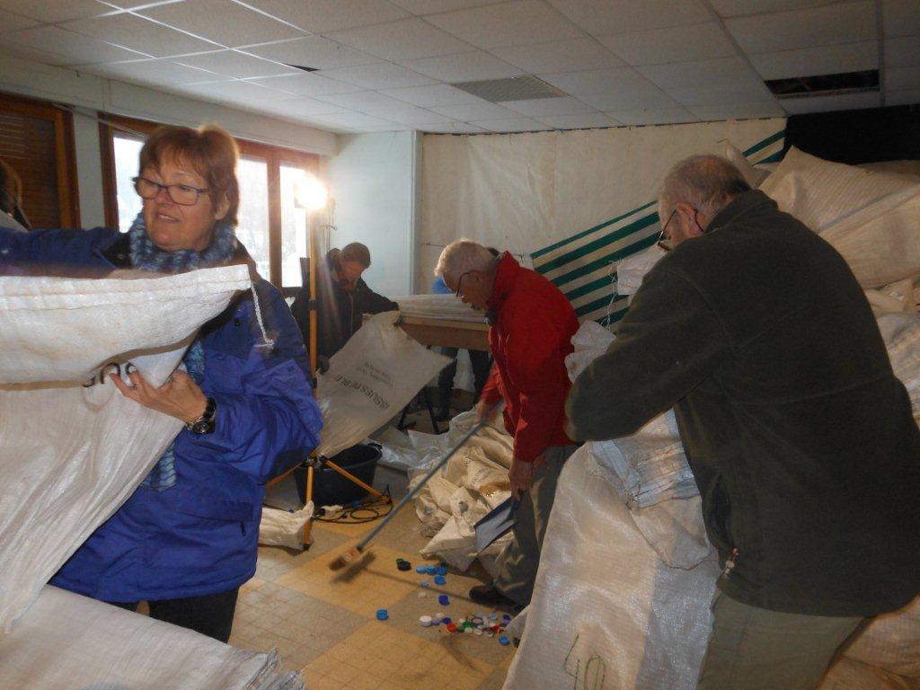 Le jeudi 26 janvier 2017, c’est par un froid mordant, que 62 bénévoles se sont retrouvés à DUINGT, sur notre centre de tri des bouchons, pour charger un camion de plus.