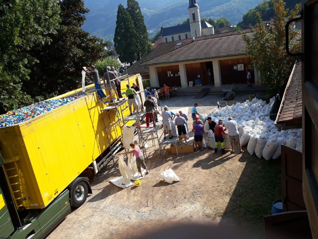 Chargement du camion 46-29 de bouchons plastique 4ème de l’année 2018