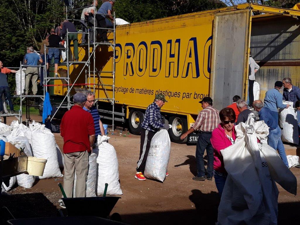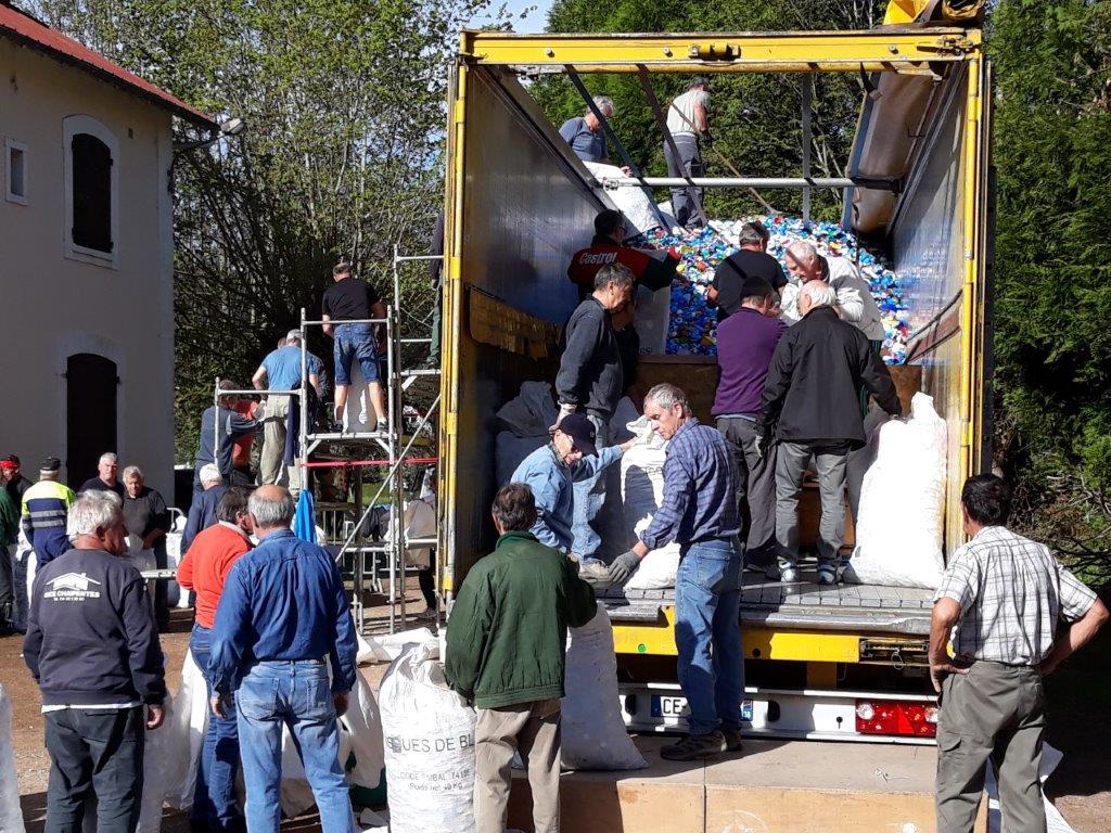 Sans déplacer l’échafaudage nous avons chargé les 90 M3 de bouchons en une heure.