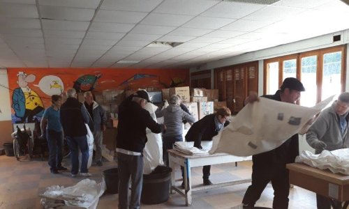 Ce Jeudi 25 avril, tôt le matin la fidèle équipe était prête à s’activer pour charger le camion.