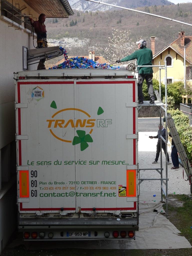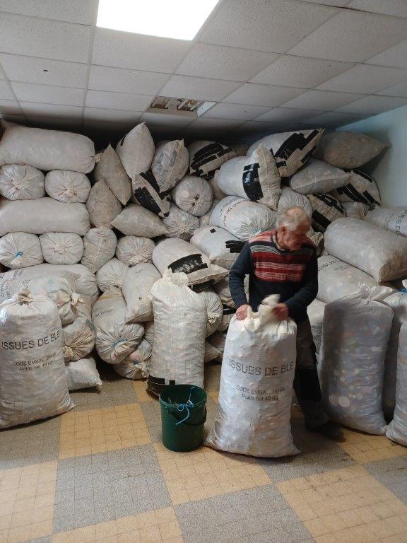 Autre déboire : auparavant, il y avait 2 rangées de platanes qui bordaient la rue située devant notre lieu de tri. Dans le cadre de la réfection de cette voie, la municipalité a fait abattre ces arbres et nous a laissé la possibilité de manœuvrer plus facilement pour le chargement des bouchons.