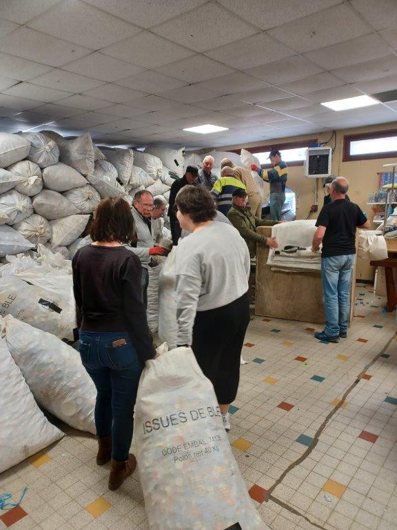 Merci aux 35 bénévoles qui ont fait le pied de grue de 7 heures à 14 h25 et sont restés jusqu’à 17 h pour l’installation, le chargement, le rangement du matériel ainsi que toutes les tâches annexes qui ne se voient pas particulièrement (2 chargeuses supplémentaires sont venues se joindre à l’équipe). Vous êtes formidables, vous avez toutes et tous un cœur généreux.