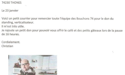 Le 19/08/2015, au centre de tri DES BOUCHONS 74 à DUINGT, nous avons reçu les remerciements de MARION, pour le financement de la motorisation de (…)