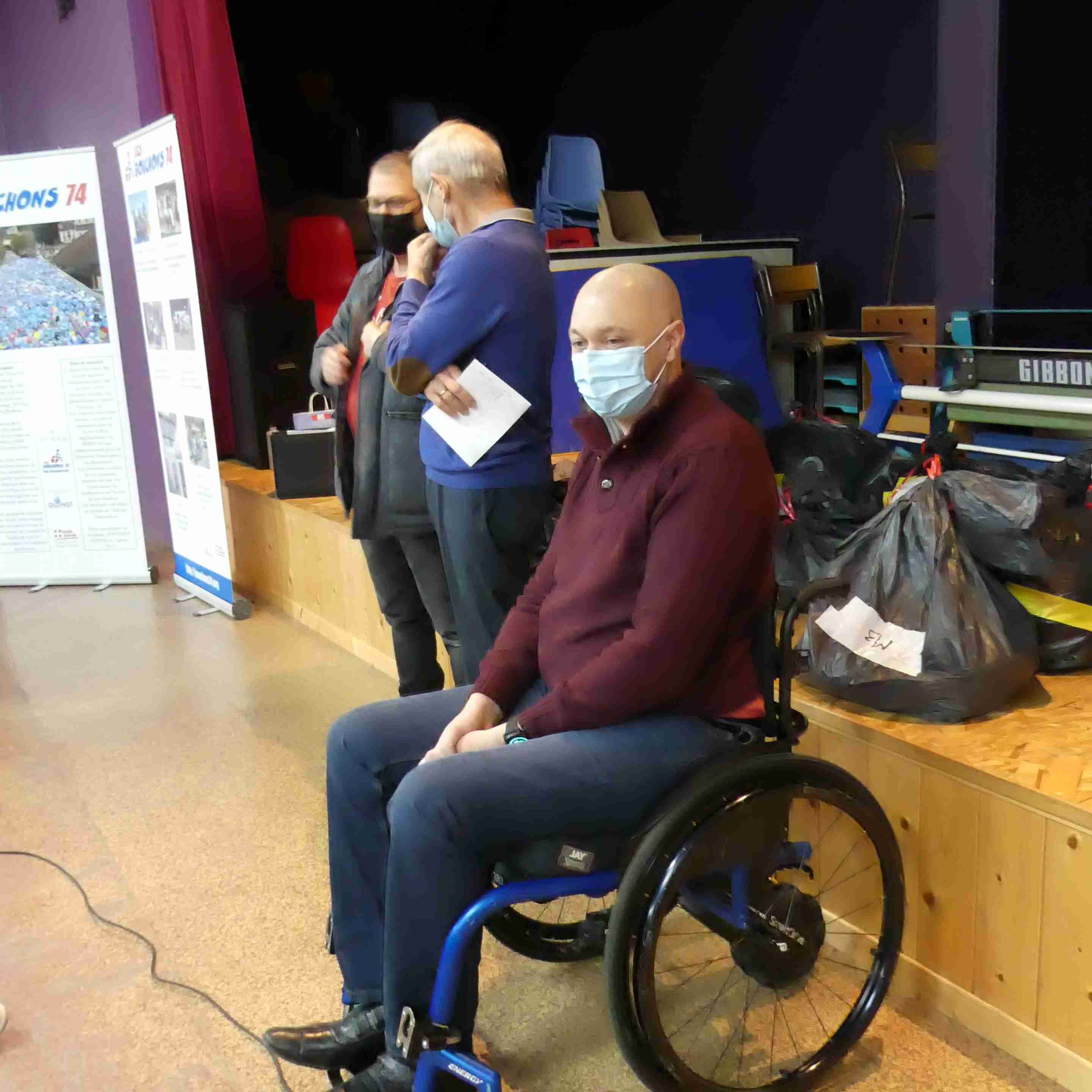Pour sensibiliser plus encore les enfants, nous avions invité M. Alexandre MOREL que les Bouchons 74 ont eu la joie d’aider en 2017 dans l’acquisition d’une assistance électrique à son fauteuil. Alexandre a eu l’extrême gentillesse de répondre à notre invitation. Il a parfaitement su sensibiliser les jeunes et donner un sens profond à l’action que nous menons avec les bouchons au bénéfice de ceux d’entre nous qui mènent leur vie avec un handicap majeur.