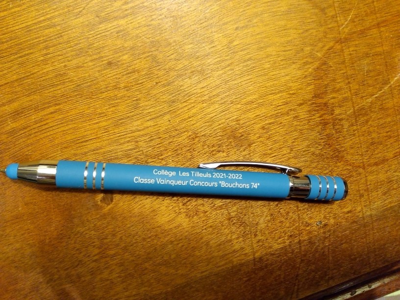 Tous les élèves de la classe gagnante ont été récompensés par un stylo spécialement gravé pour cette occasion (voir photo).