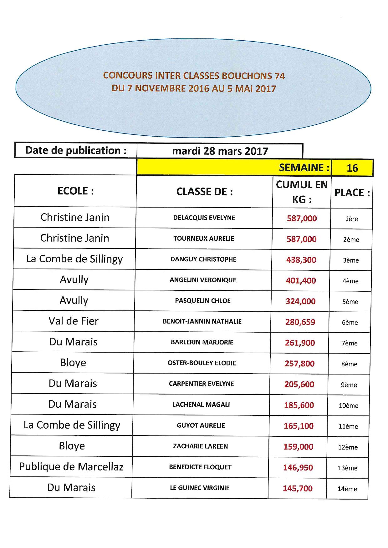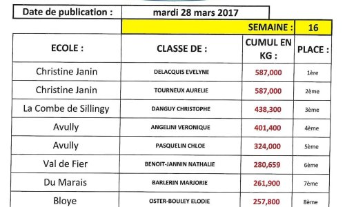 Vous trouverez ci-joint les résultats de la pesée de la semaine N° 16. UN GRAND MERCI à tous les acteurs de ce moment de solidarité.