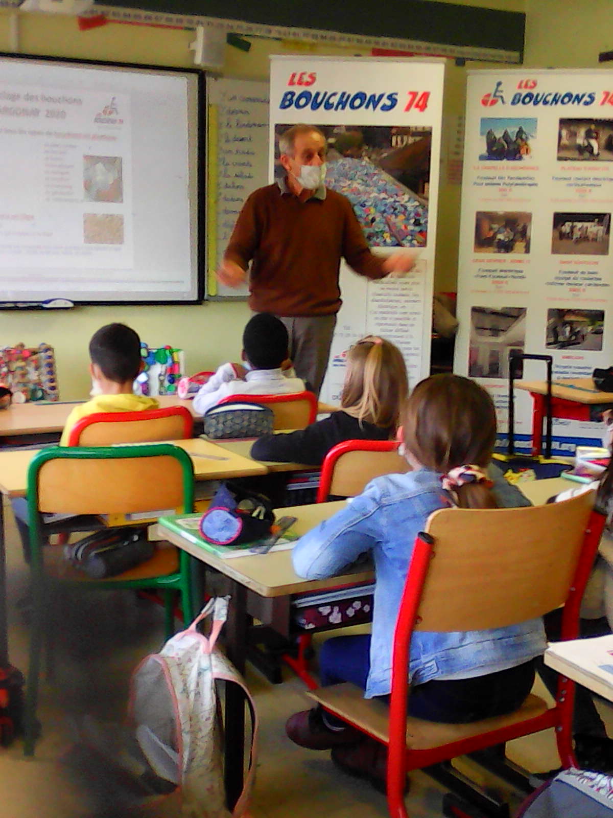 Le lundi 24 01 2022, deux bénévoles de notre association ont fait une présentation des Bouchons 74 à trois classes, de GS, CP, CE1 & CE2.