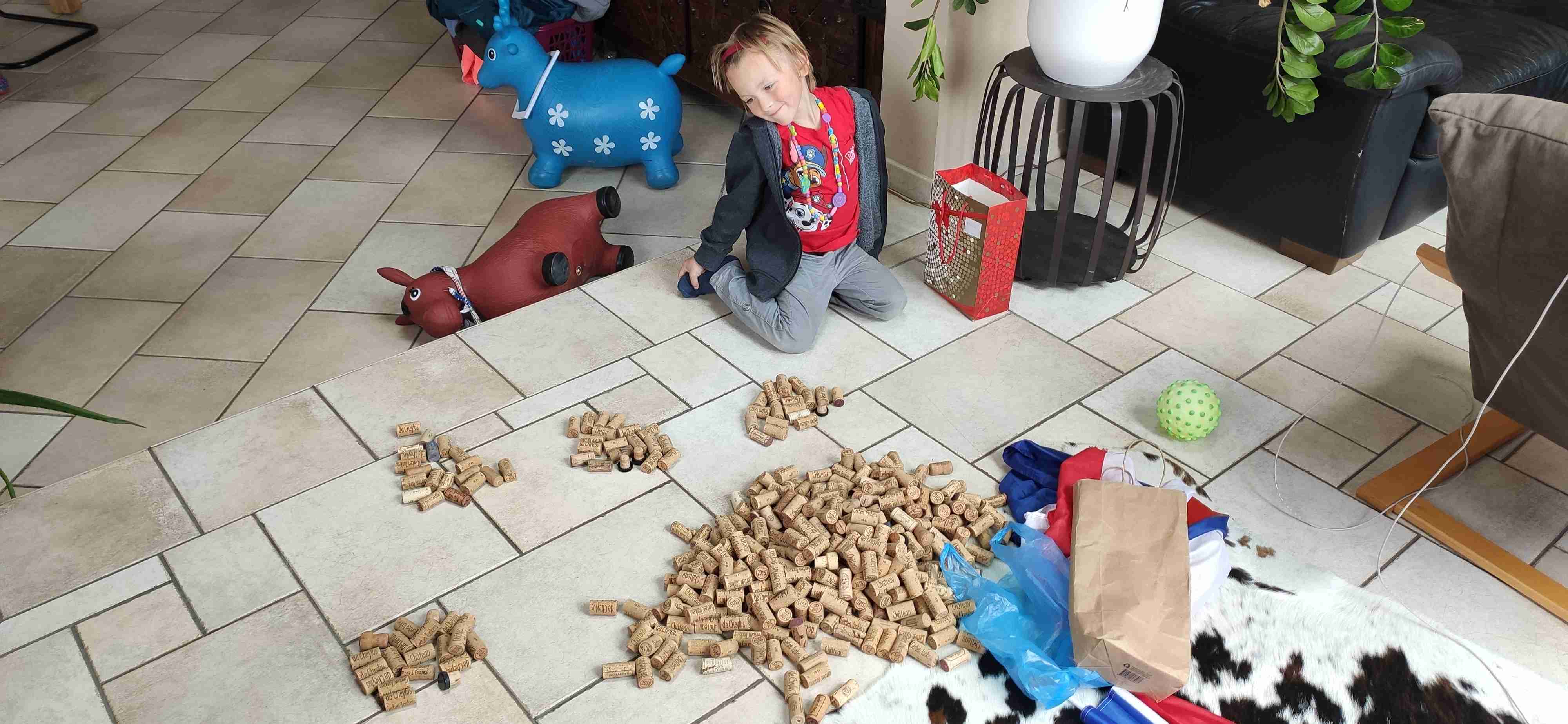 Elio 5 ans ½ récolte des bouchons à ANDILLY