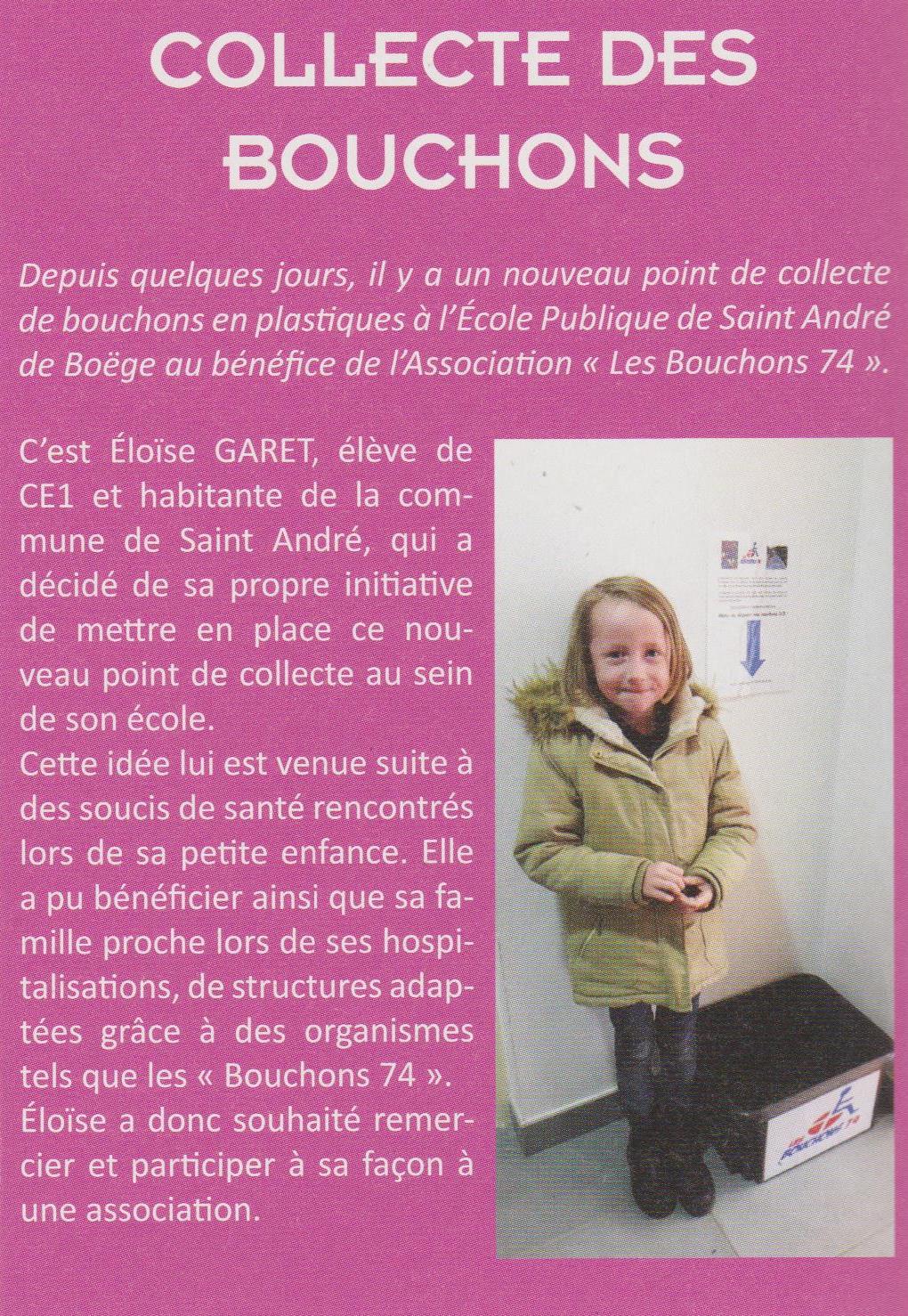 Encore un grand merci à elle et à tous ceux qui répondent à son appel pour collecter les bouchons.