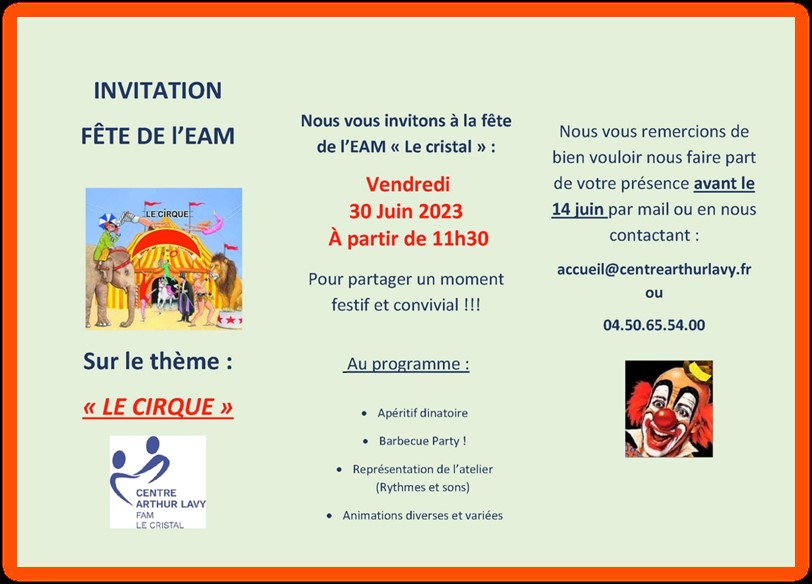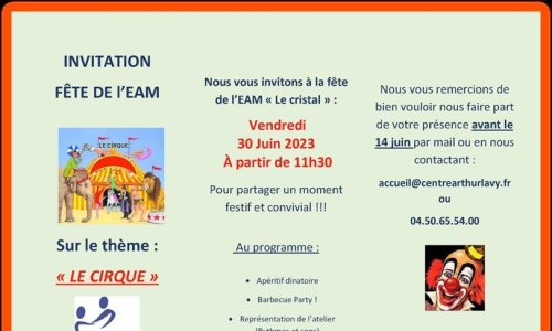 L’EAM le Cristal (Etablissement d’Accueil Médicalisé) convie ses partenaires (dont les Bouchons 74) à sa fête estivale qui aura lieu le Vendredi 30 juin à partir de 11h30.