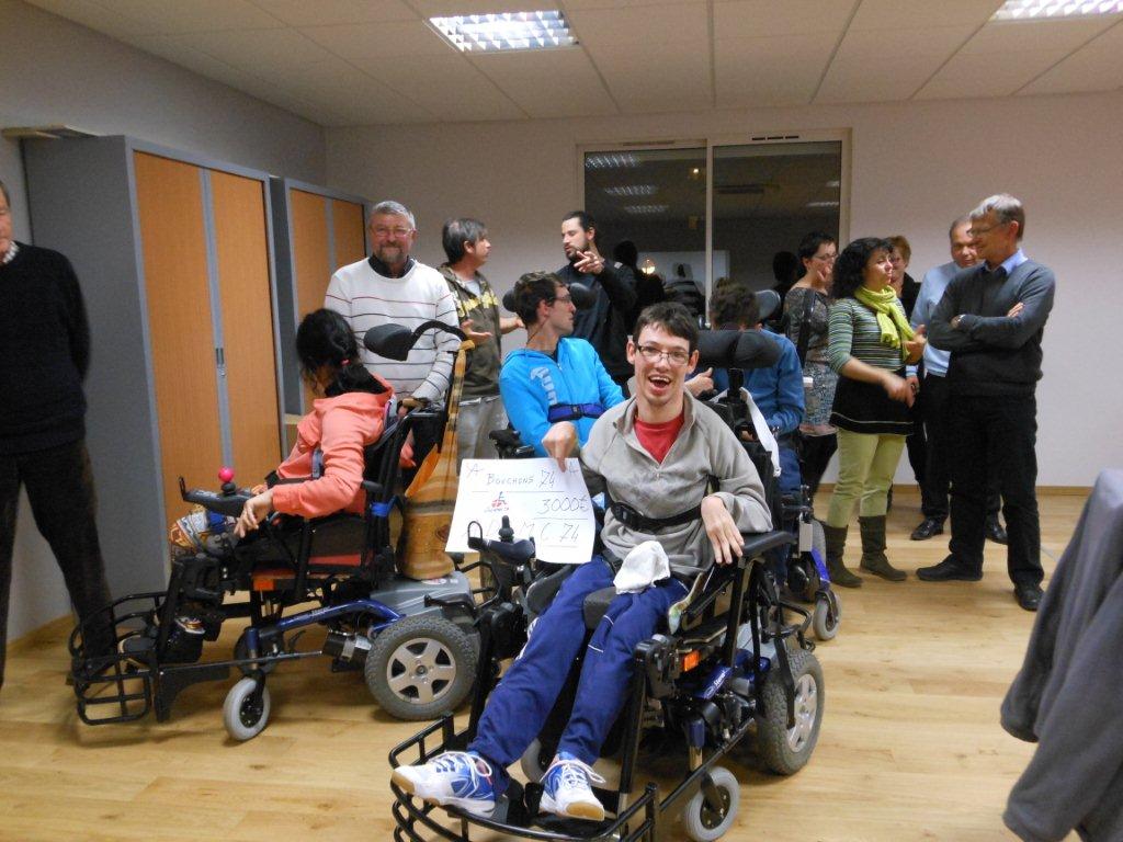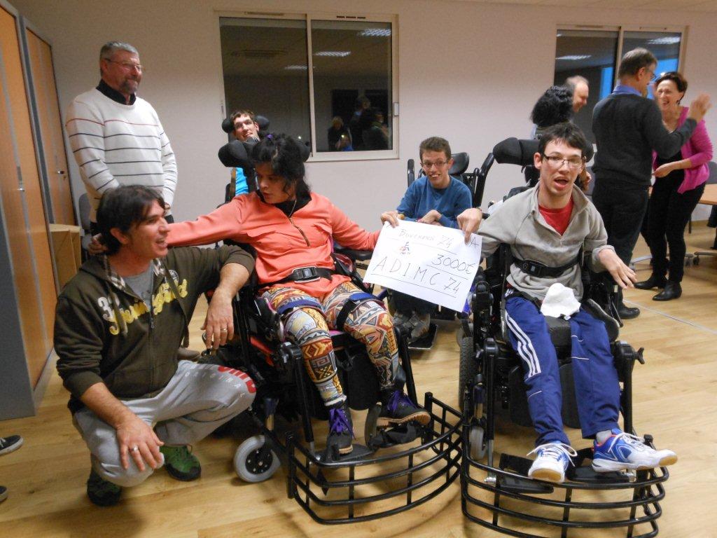 Le mardi 10 mars 2015, dans les locaux de l’ADIMC 74, a eu lieu la remise d’un chèque de 3000 euros des Bouchons 74 pour le financement d’un fauteuil foot Ball.