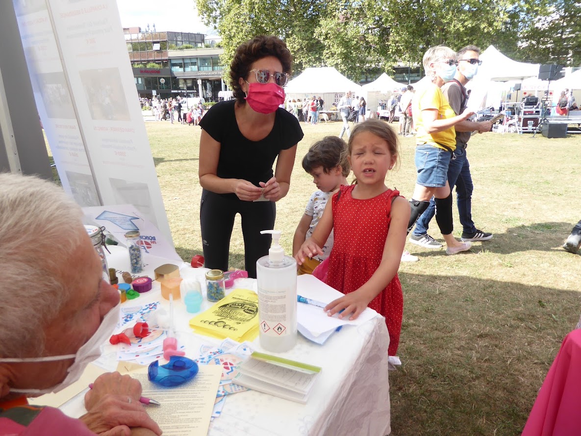 Un petit garçon de 5 ans demande "comment vous faites des sous avec des bouchons ?". - et aussi donner l’envie de nous rejoindre en tant que bénévoles et promouvoir notre fête de la pomme.