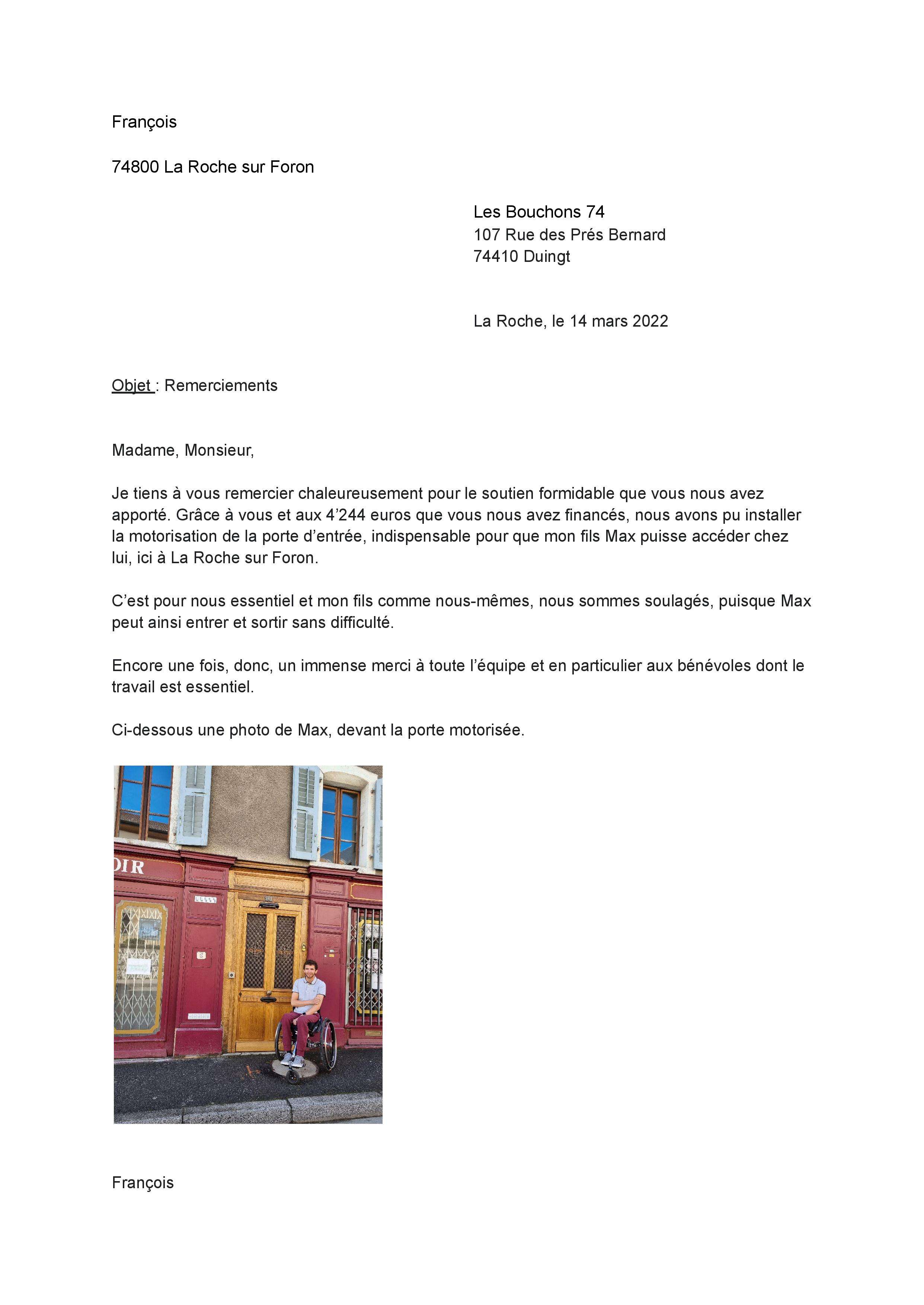 Les Bouchons 74 ont participé a hauteur de 2000 euros, à l’achat de ce fauteuil éléctrique, en faveur d’une jeune personne en situation de (…)