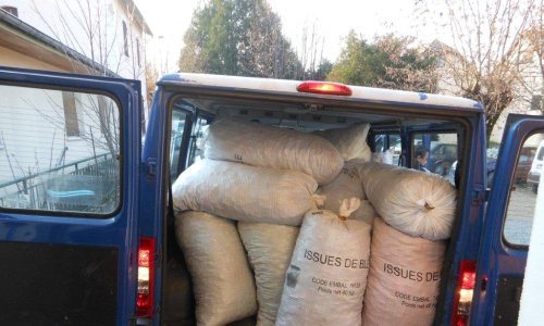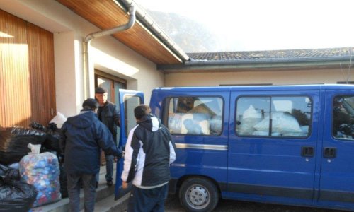 L’inauguration de la première livraison au local de stockage de DUINGT des bouchons triés a été faite par une équipe de l’établissement avec leur camionnette, le 28 11 2013. 29 sacs triés pour un poids de 520.2 KG.