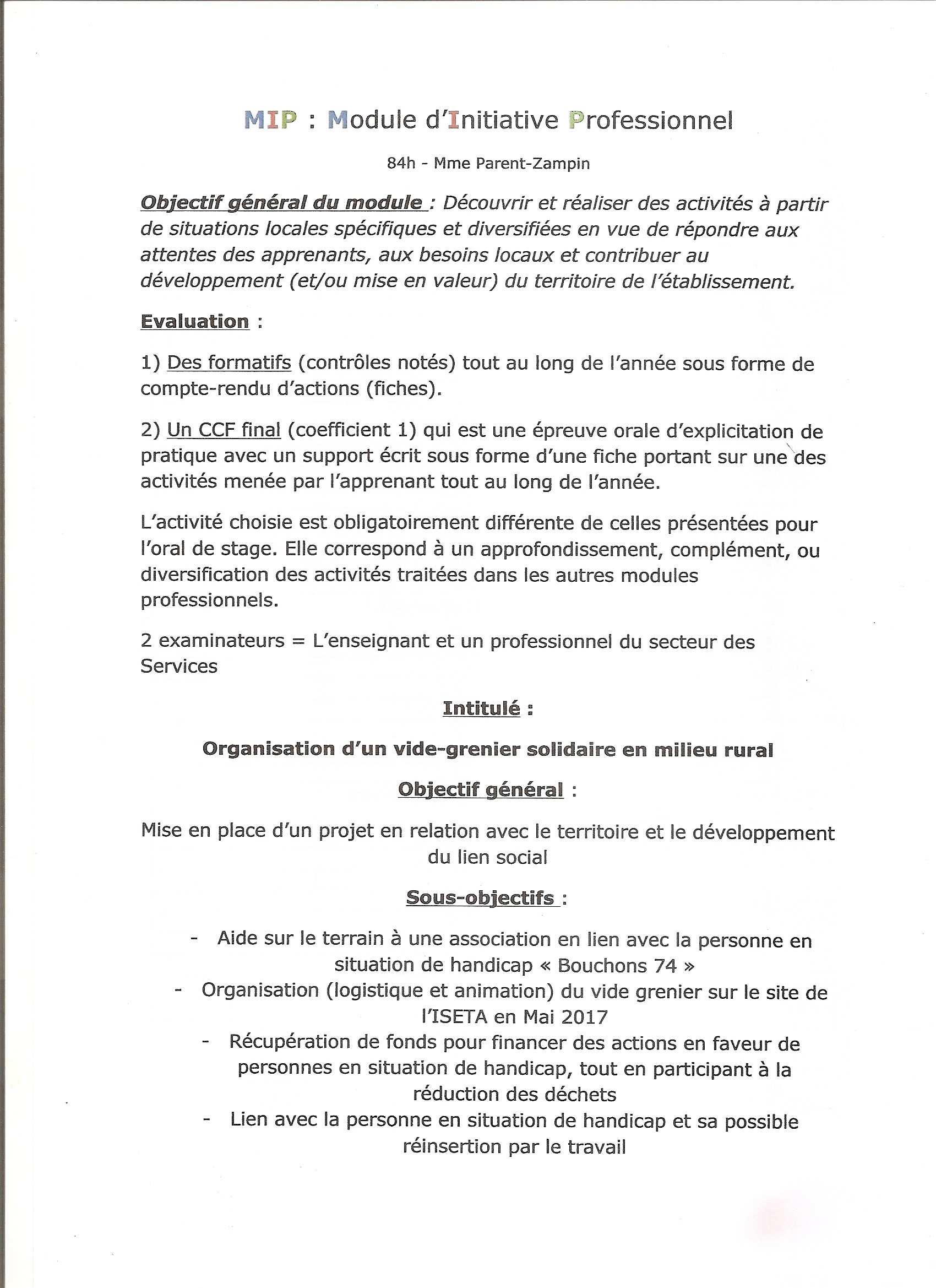 Le lundi 05 septembre 2016, des bénévoles de notre association ont rencontré la classe CAP 2éme année SAPVER (Services aux Personnes et accueil Vente en Espace Rural).