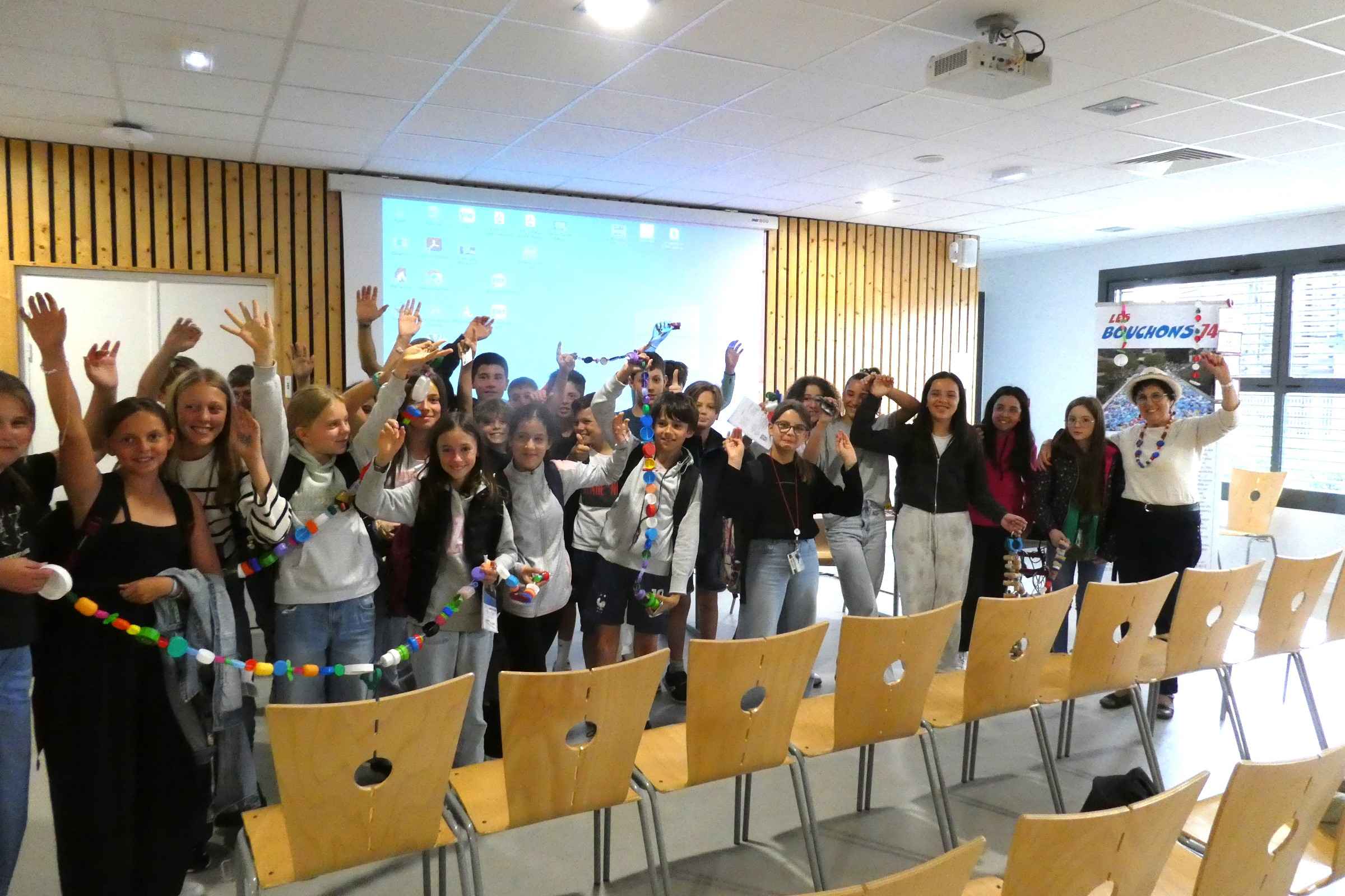 À la demande de Madame NAYRAT, Professeur en classe de 6° du Collège Simone VEIL de POISY, Martine et Jean-Louis ont une nouvelle fois présenté l’Association des Bouchons 74 à une classe déjà très impliquée dans la collecte de bouchons.