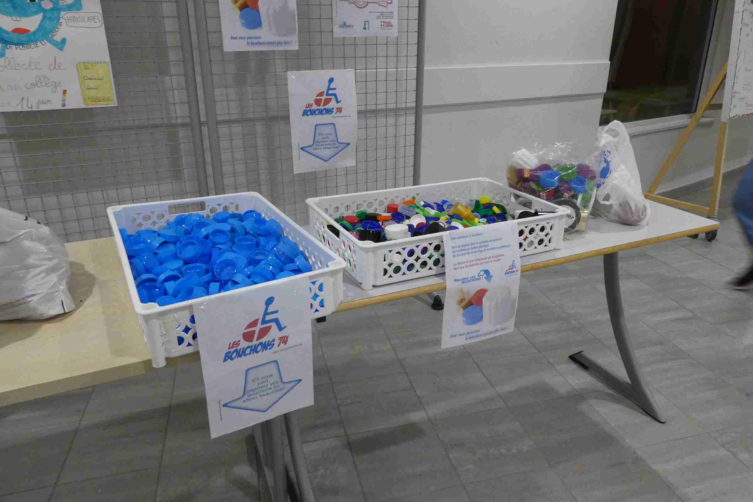 Un stand de collecte placé dans le hall d’entrée du Collège a récupéré une vingtaine de kilos de bouchons en quelques semaines.