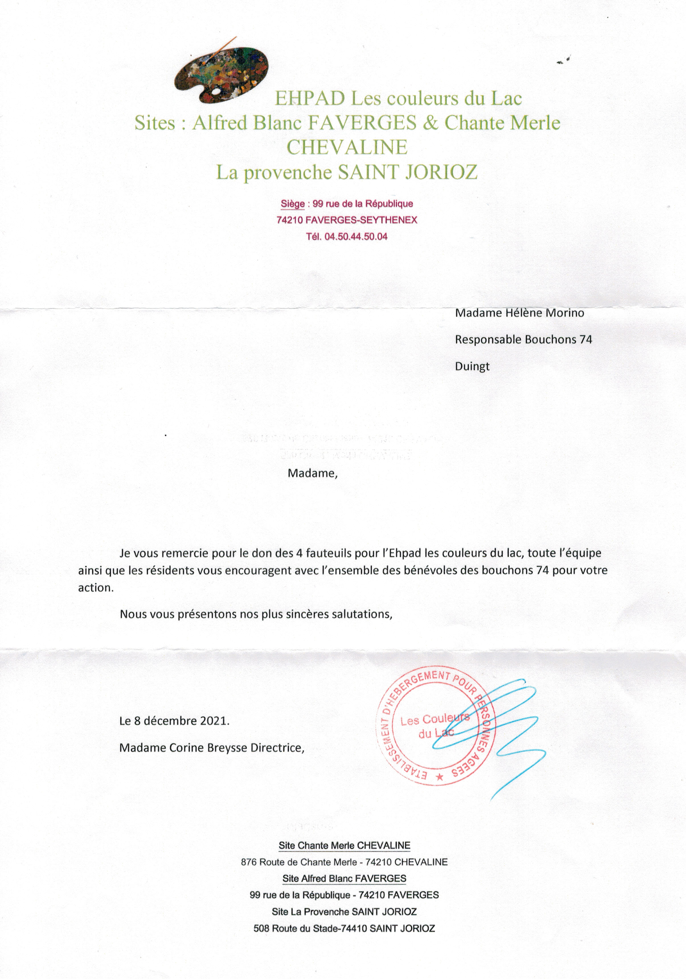 L’EPADH de Saint Jorioz Les couleurs du Lac nous remercie