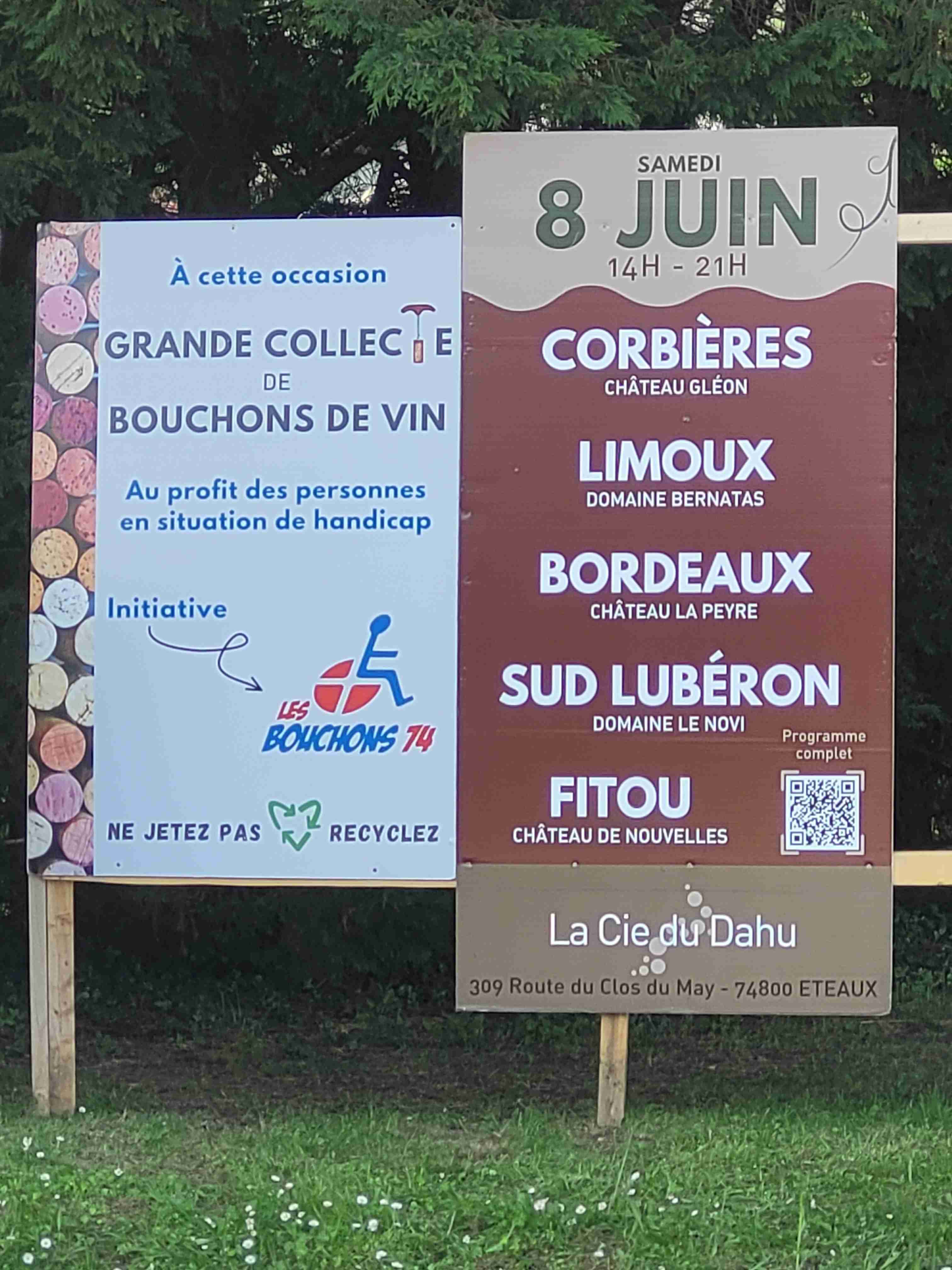 Notre collecteur Patrick MOENE de la Compagnie du DAHU à ÉTEAUX, vient de poser une dizaine de panneaux pour récolter des bouchons pour nous.