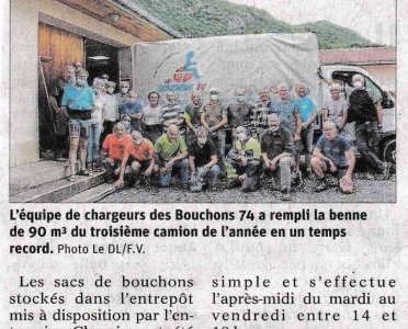 Article du Dauphiné Libéré en date du : 11/07/2021 ; DUINGT : Déjà le troisième camion de l’année pour les Bouchons 74