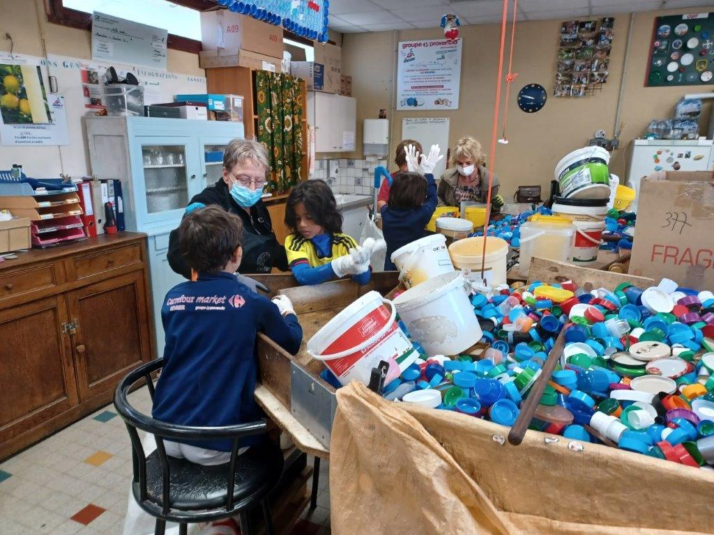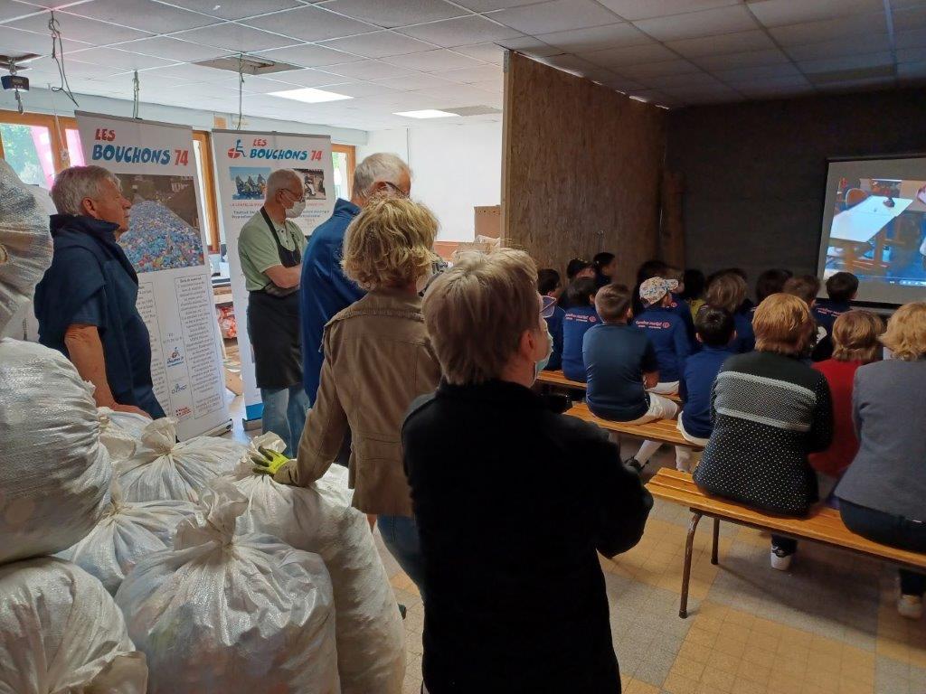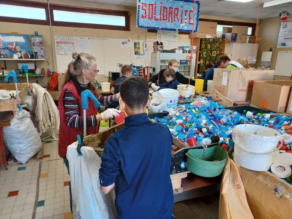 2 groupes ont été créés, l’un au tri des bouchons en matière plastique et l’autre a pu être pris en charge pour être renseigné sur la démarche des Bouchons 74 avant de rejoindre le tri des bouchons en liège.