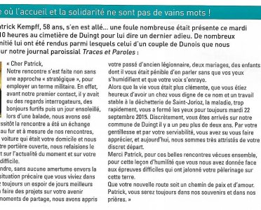 Nous aurons le souvenir de sa disponibilité, de ses facéties pendant le tri des bouchons au local de DUINGT, de son courage.