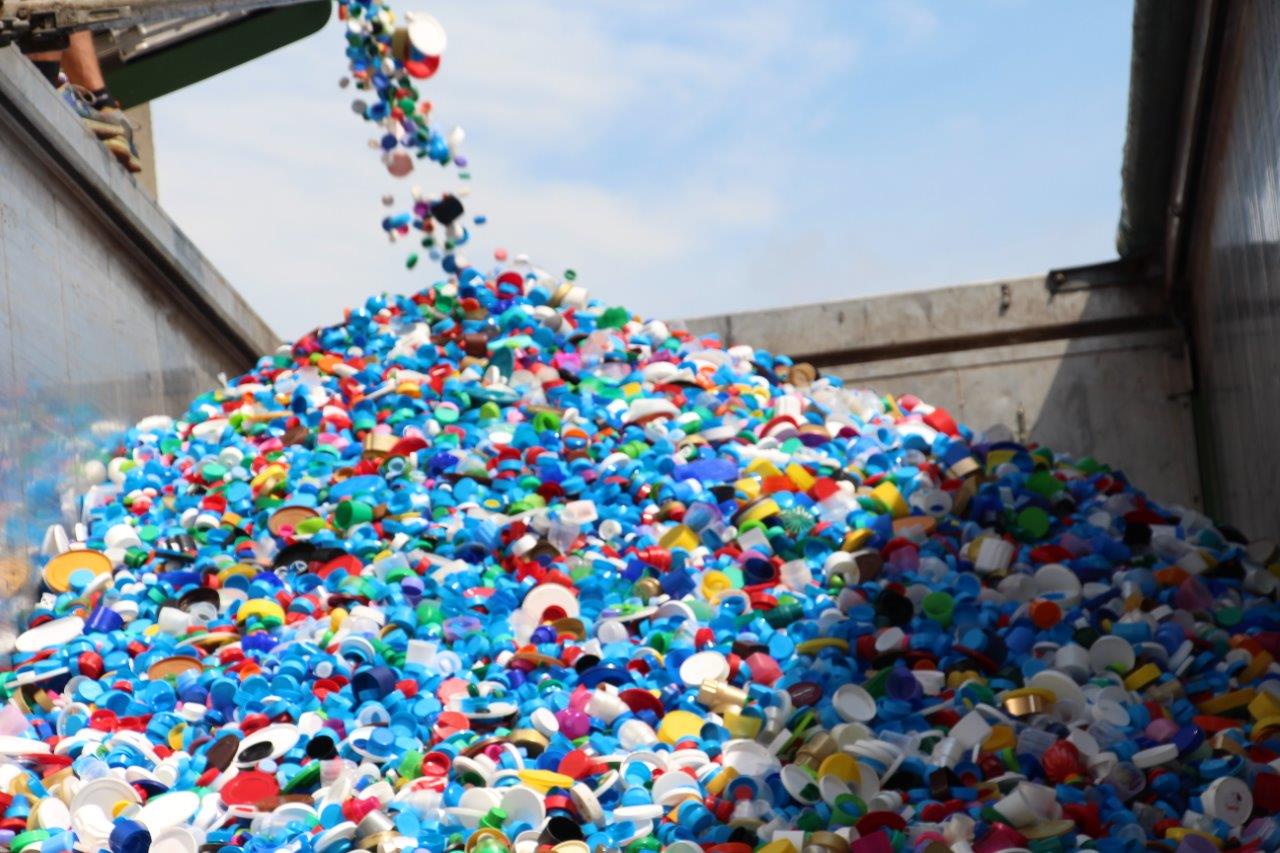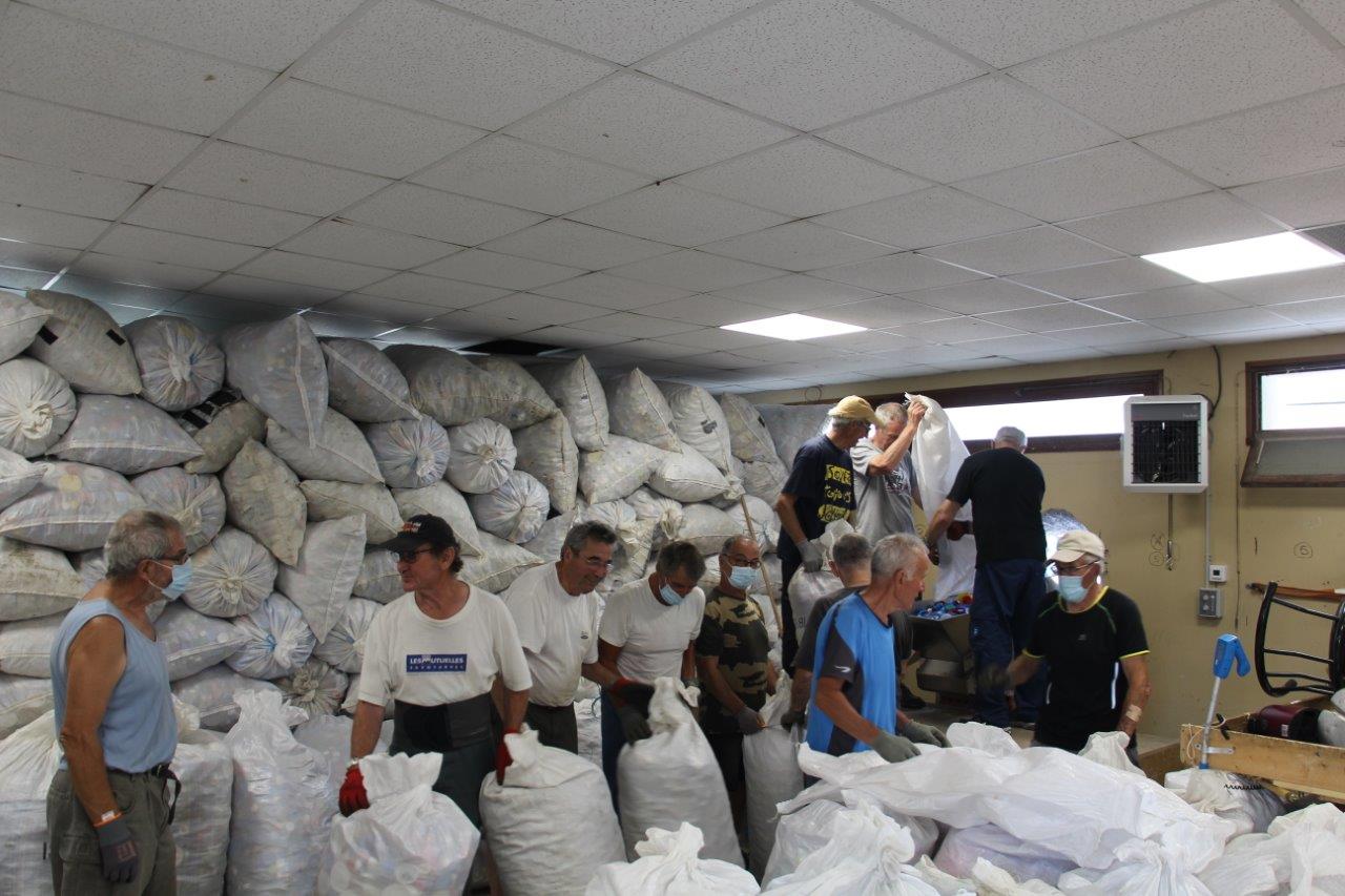Une chaine humaine s’est mise en mouvement pour empiler tous ces bouchons prêts à être expédiés dans un prochain camion.