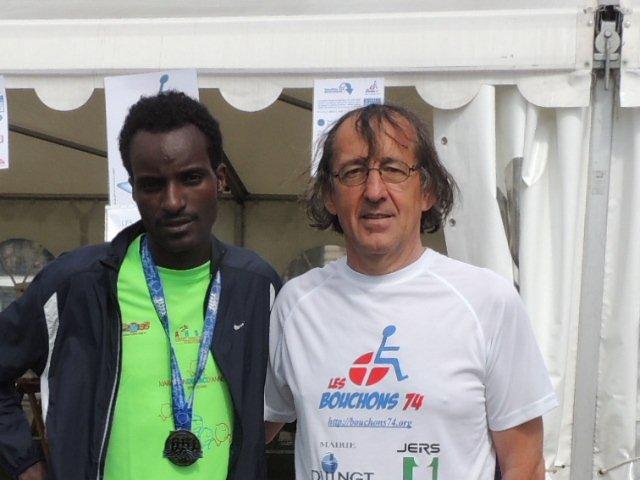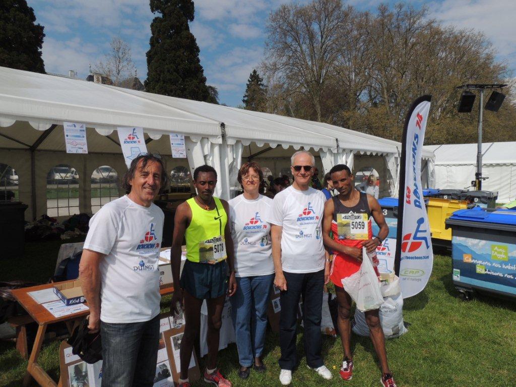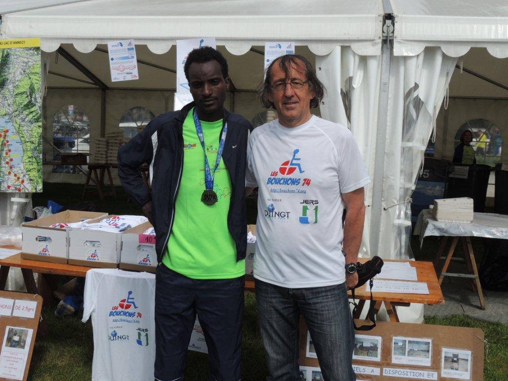 Les photos du stand, ainsi que le gagnant du marathon (M. MEDA Muleta) et les deux gagnants du semi marathon (M. MEKONNEN Aleme-Zewdu et M. KUMBI-BECHERE Tura).