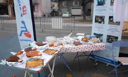 Severine, accompagnée de Emmanuelle et Isabelle ont tenu la buvette du marché et vendu de la pâtisserie maison, ainsi que des jus de pommes et des tee-shirts au profit de notre association.