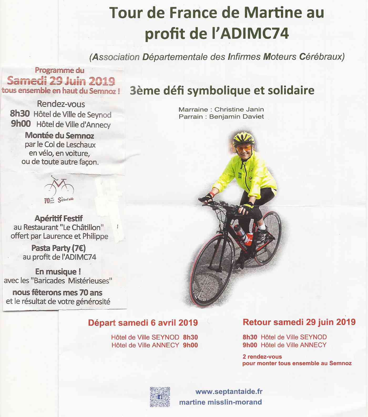 Si vous voulez l’accompagner en haut du Semnoz deux rendez-vous Samedi 29 juin 2019 8h30 Hôtel de ville de SEYNOD 9h00 Hôtel de ville d’ANNECY.