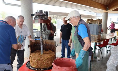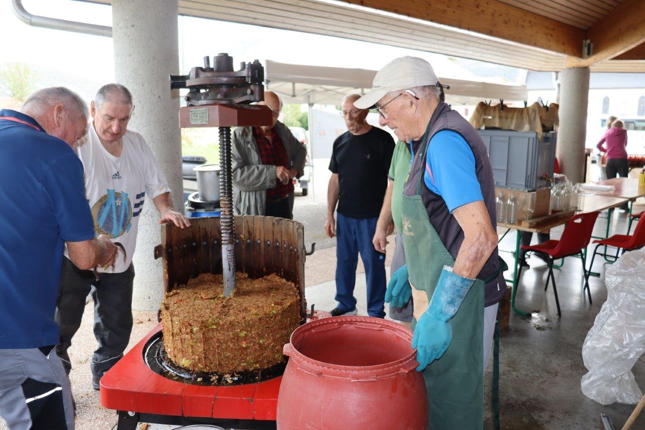 Nous avons eu une pensée particulière pour notre ami Alfred, son pressoir nous a bien servi, merci à Pierre (fils) qui nous l’a mis à disposition et à Jean-Paul qui faisait les navettes pour aller chercher les caisses de pommes chez notre producteur.