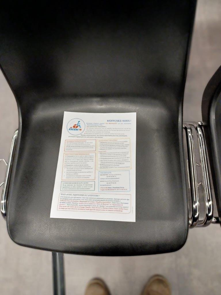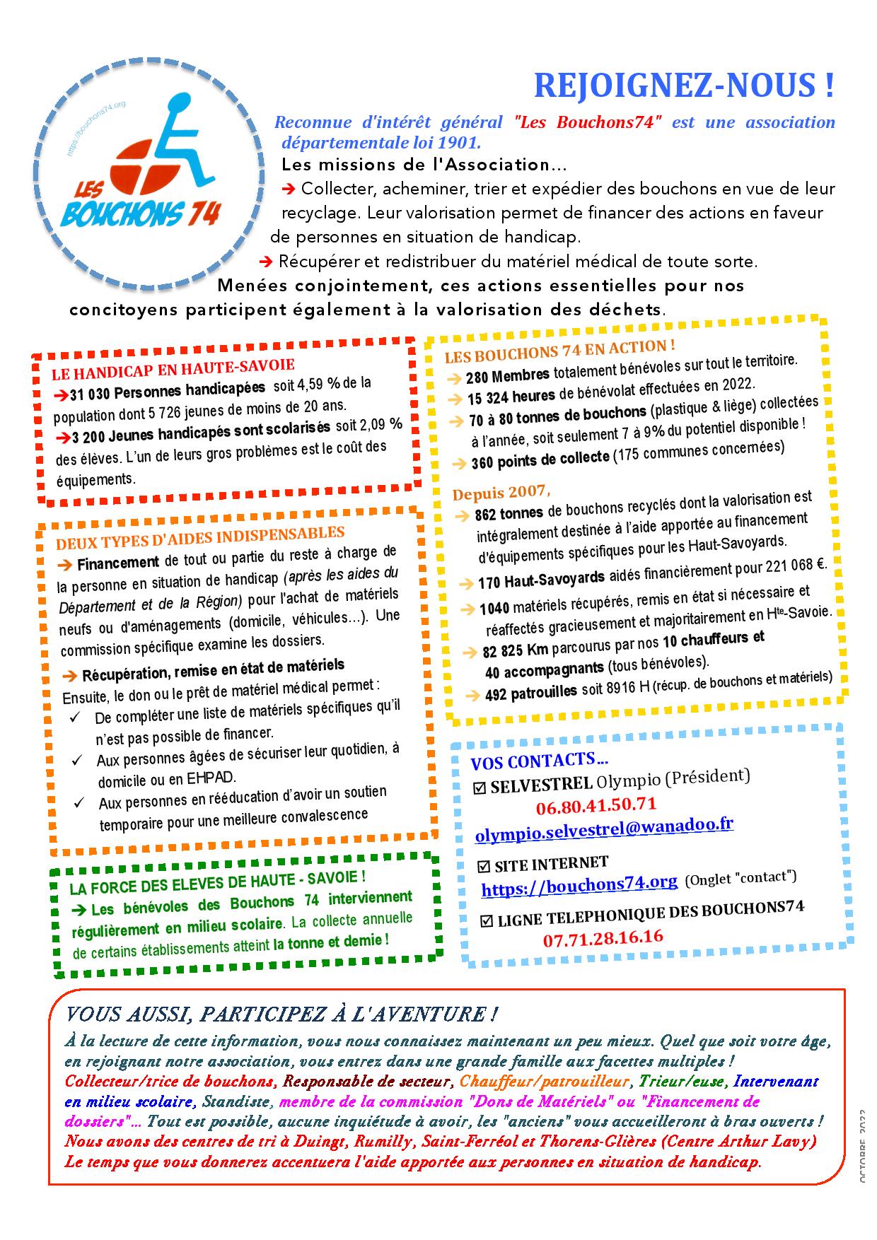 La publicité en faveur des bouchons 74 a été très efficace, sur tous les sièges une feuille de présentation des Bouchons 74 a été proposée à la lecture des sociétaires.