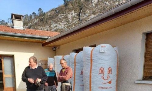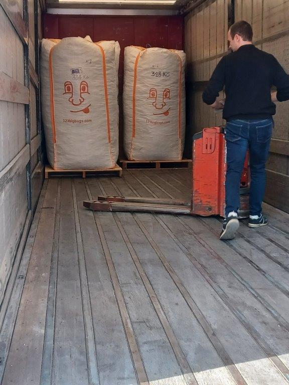 Lundi 28 mars 2022, sous un soleil éclatant, douze palettes de bouchons en liège conditionnées dans des BIG BAG avec une estimation de 4 306 KG ont été expédiées à Bordeaux chez le recycleur AMORIM, ensuite direction le Portugal.