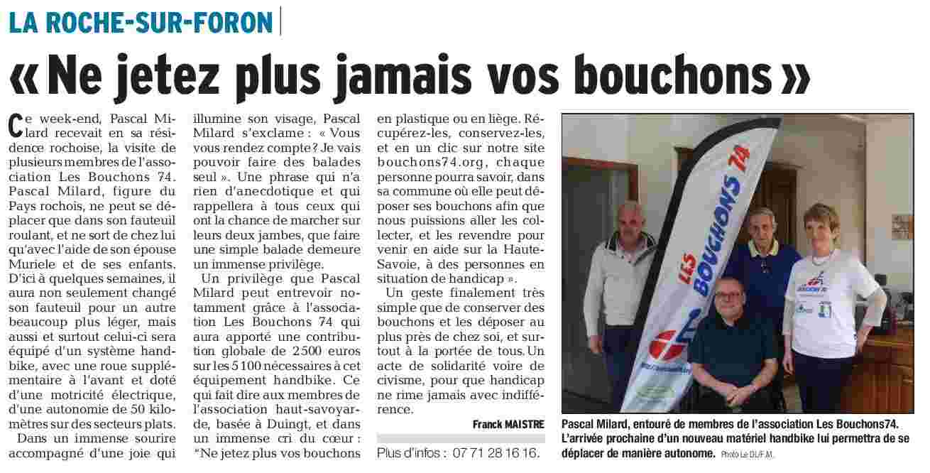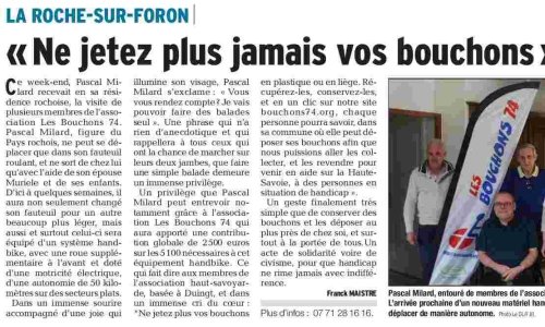 Article du Dauphiné Libéré en date du : 21/03/2018 ; LA ROCHE SUR FORON, ne jetez plus jamais vos bouchons