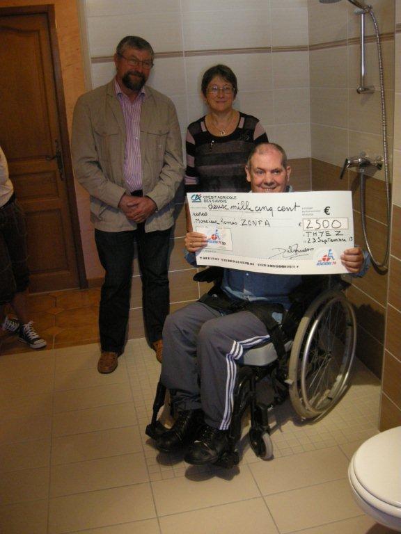 Les Bouchons 74 ont participé a hauteur de 2500 euros, pour l’aménagement d’une salle d’eau adaptée, d’une personne en situation de handicap.