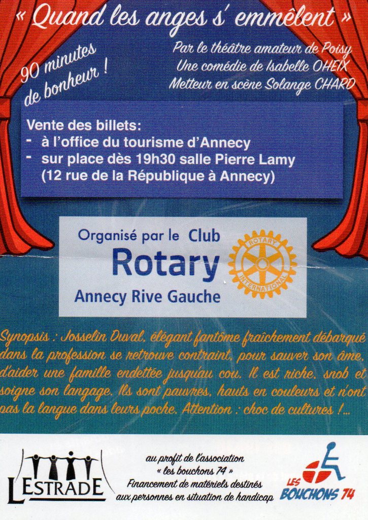 Le ROTARY CLUB ANNECY Rive Gauche organise cette soirée au profit de notre association BOUCHONS 74.