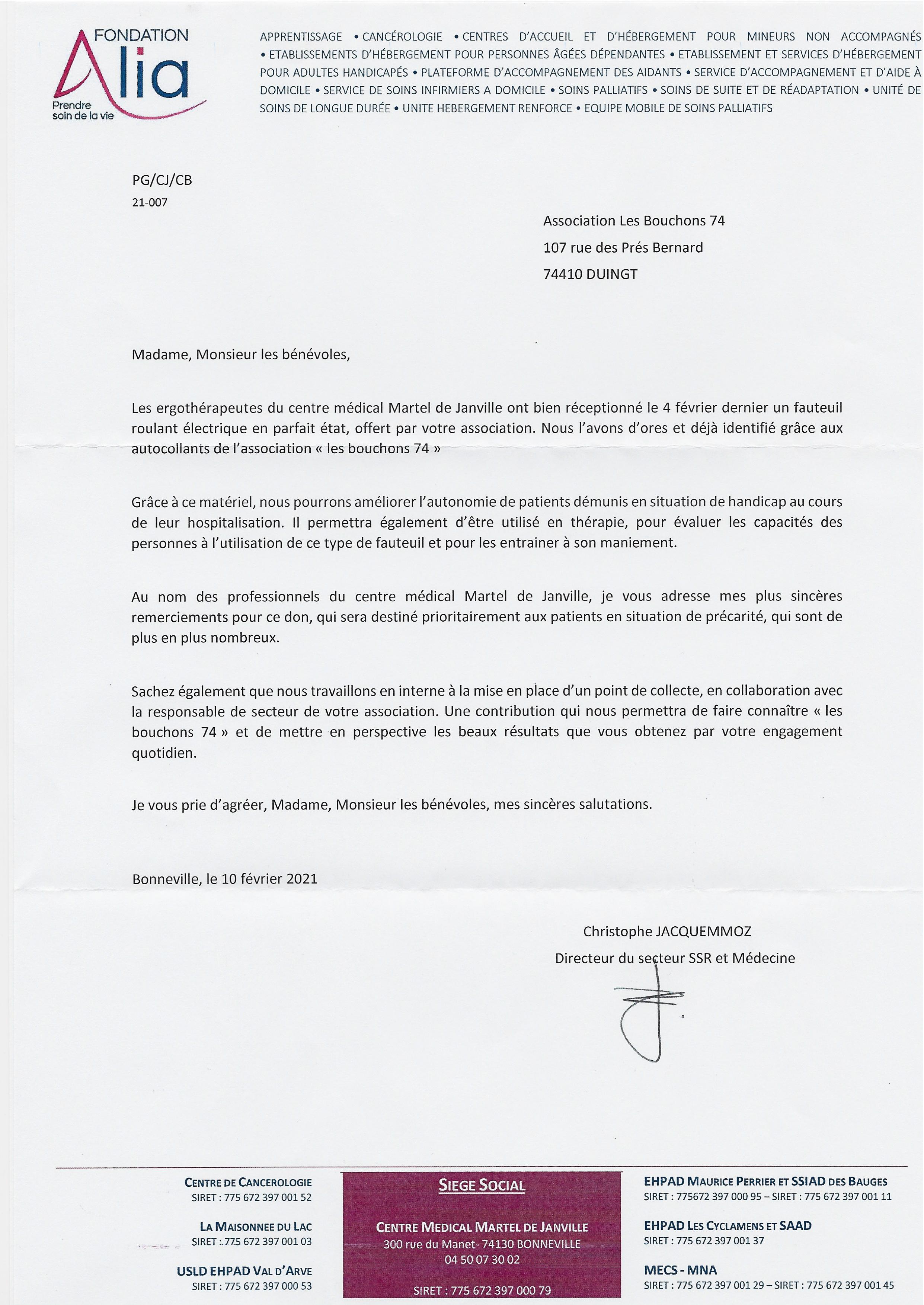 Ils sont adressés à tous les bénévoles des Bouchons 74.
