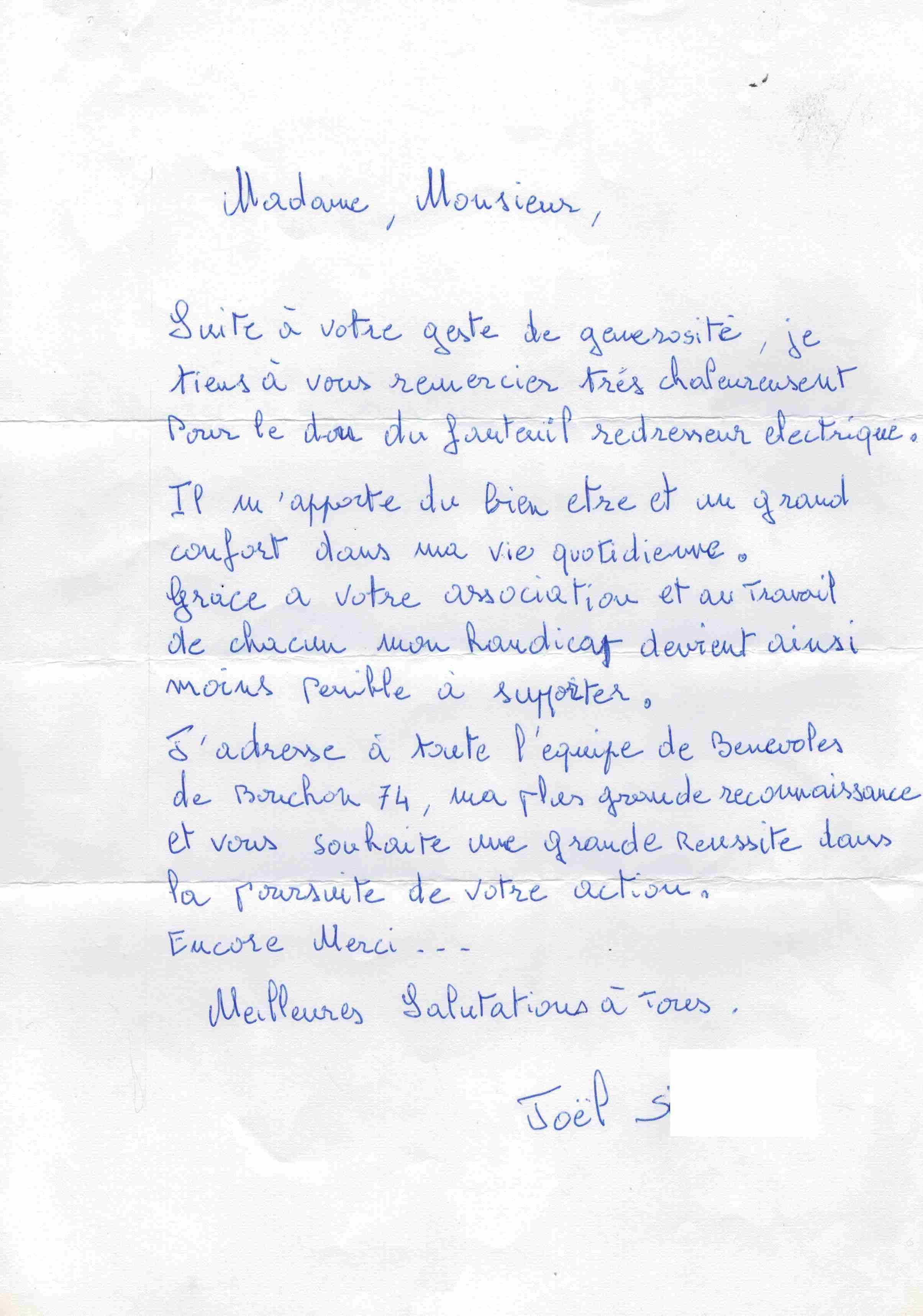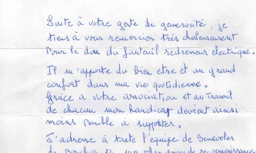 Merci à cette personne pour son gentil mot qui motive nos bénévoles.