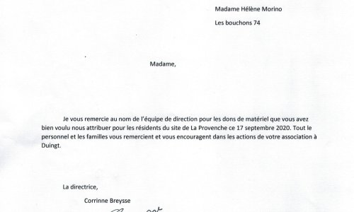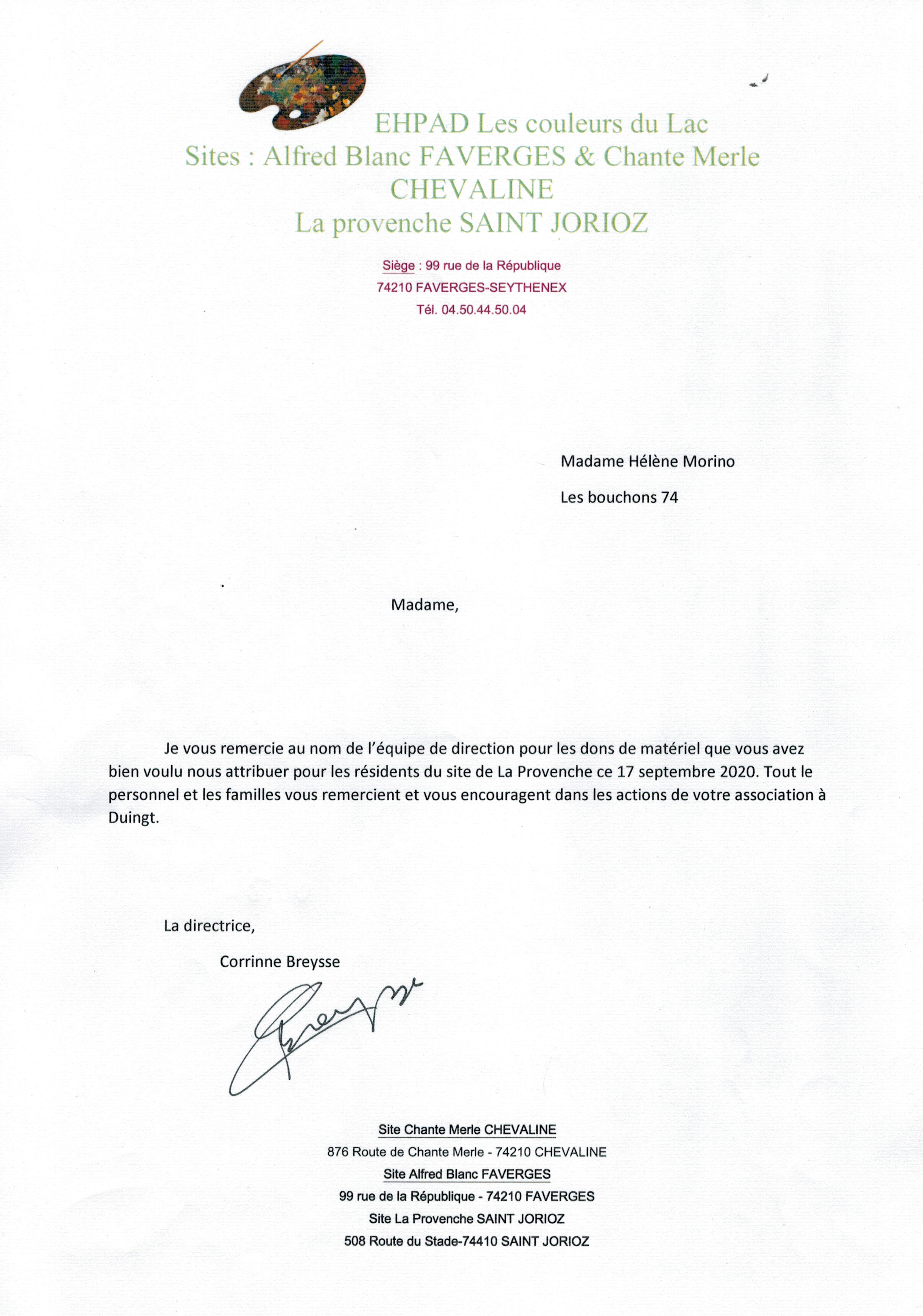 Remerciements de l’EHPAD Les Couleurs du Lac