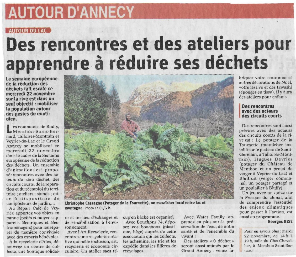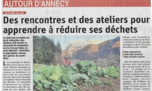 Mardi 22 novembre 2022, Olympio (notre président) a représenté les Bouchons 74, à la « semaine européenne de la réduction des déchets » organisée par les communes de Bluffy, Talloires-Montmin, Veyrier du lac et le Grand Annecy.