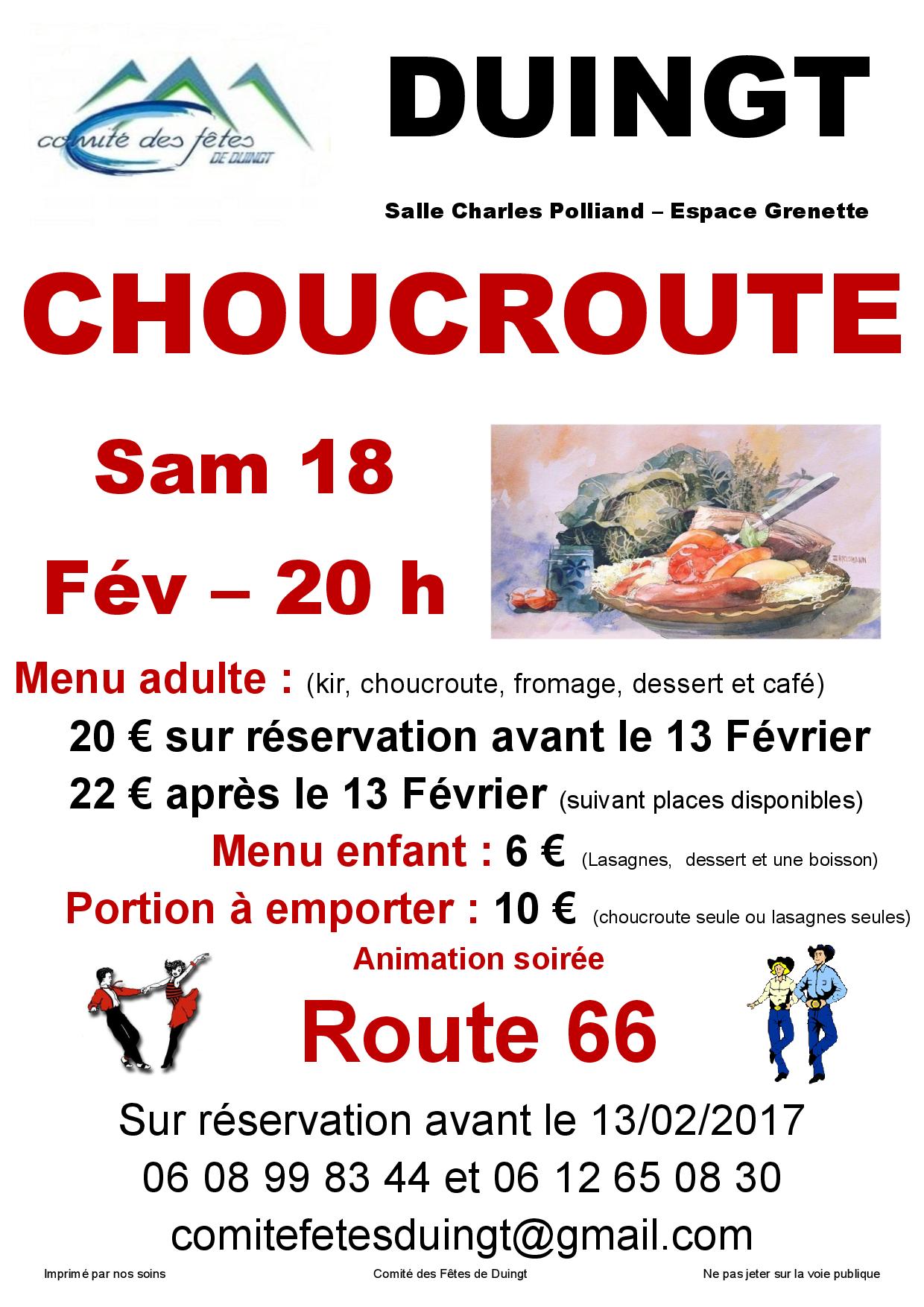 Réservez votre soirée le samedi 18 février 2017, pour la soirée choucroute organisée par le Comité des fêtes de DUINGT..
