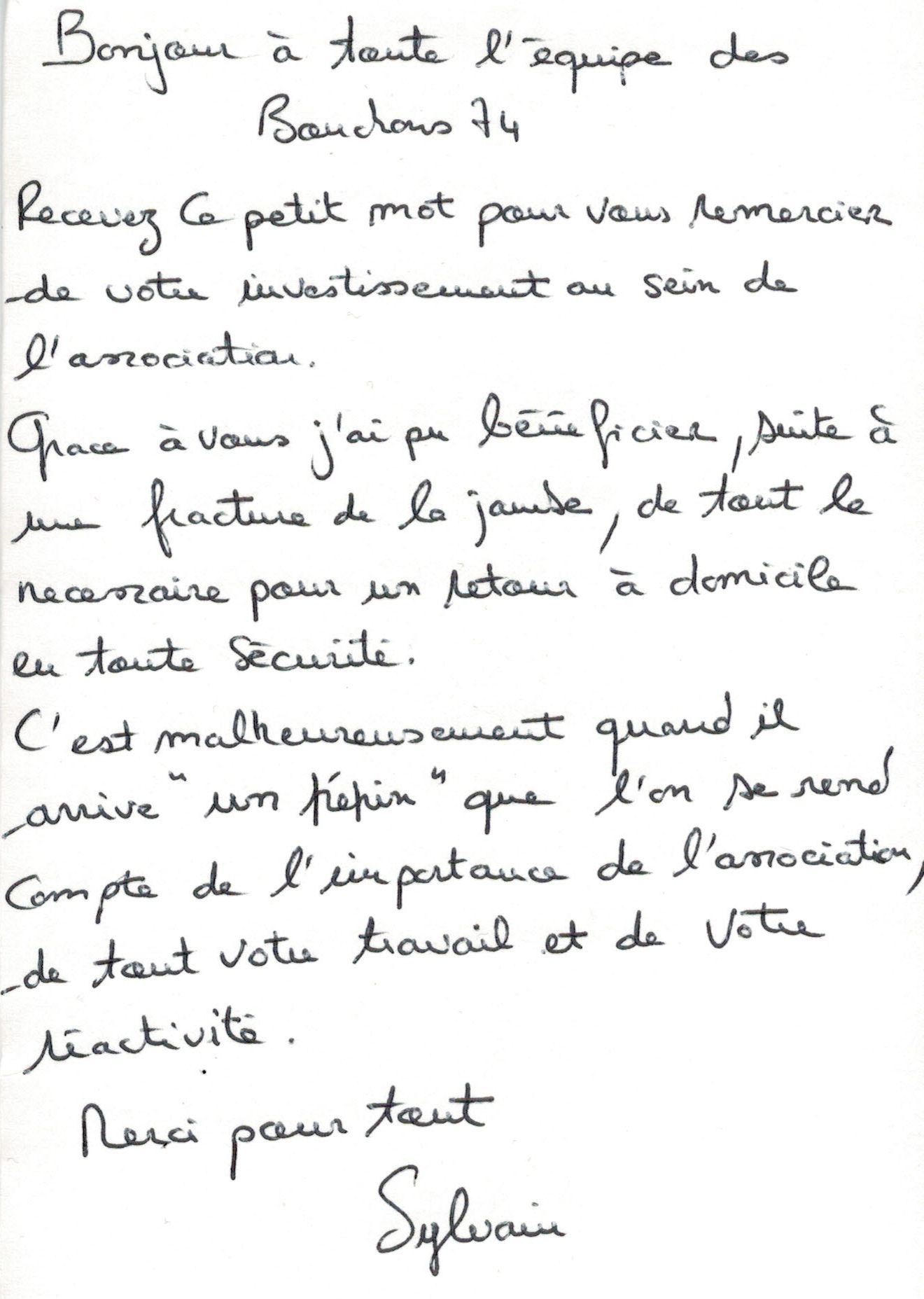 Merci à Sylvain, pour ce mot qui motive nos bénévoles. Nous lui souhaitons un bon rétablissement.