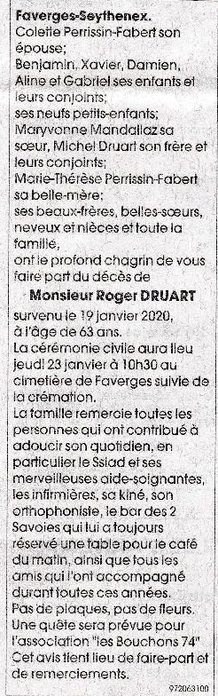 Nous venons d’apprendre le décès de Monsieur Roger DRUART habitant de FAVERGES.