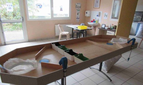 Ci-dessous des photos de la table de tri confectionnée par les éducateurs.