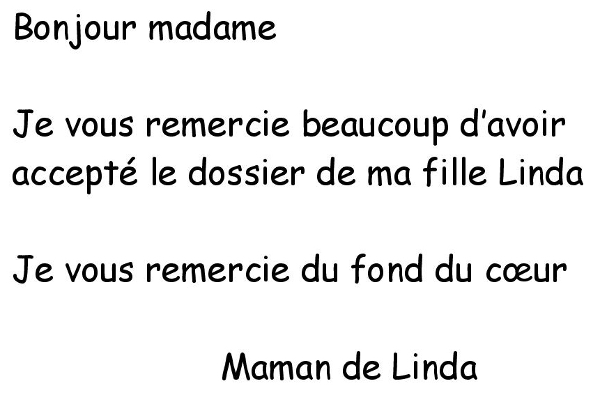 Ci-dessous un gentil mot de remerciement et la photo du matériel acquis.